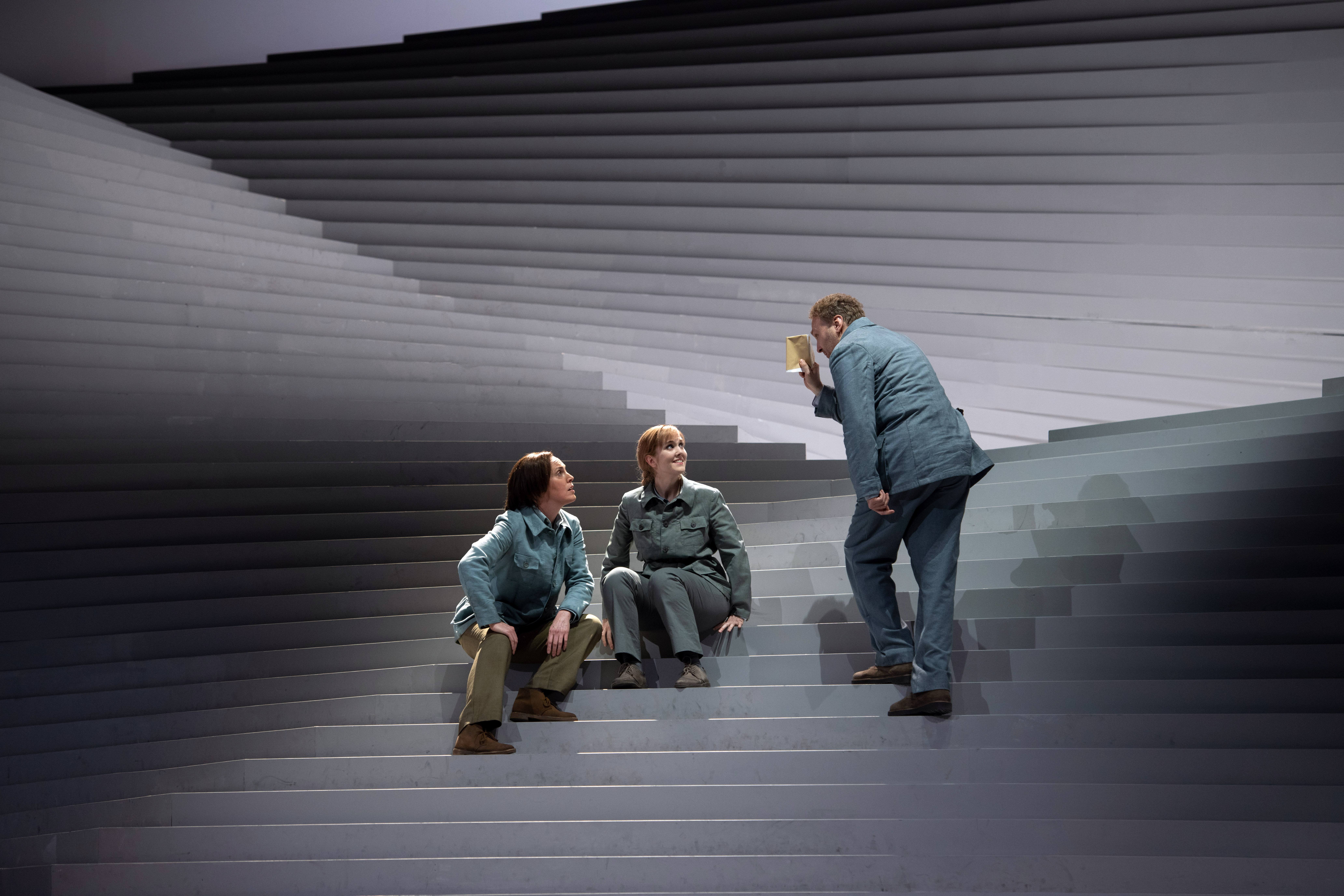 At a time, when so many of us are imprisoned in our own homes in fear of something that cannot be seen, yet for which the effects are catastrophic, Waltz’s staging seems to be very much of the moment. This is a work about freedom against tyranny, of conjugal love, and the brief respite of sunlight. Yet in Waltz’s world, we see characters who exist in a world in which there is no escape. Interestingly, as Leonore and Florestan are reunited, they don’t even touch, divided by the steps, even in the jubilant final chorus they are lost from each other, destined to circulate forever with others, imprisoned in this mysterious structure from which escape is visible yet unachievable. I found it a fascinating idea, though inevitably the sense of catharsis, of happy ever after, is denied to us. Again, this is simply a reflection of the times in which we find ourselves, and Waltz and his cast have given us a piece of theatre that provokes reflection.