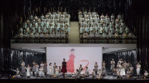 This was undoubtedly an interesting way to spend an afternoon and I was certainly glad to have the opportunity to see Michieletto’s staging – at least on the small screen. It makes for a fascinating exploration of the work, perhaps less emotionally visceral than some of Michieletto’s other work, but none the less an interesting study of the darker side of human nature. The reception of the Roman audience to the production team was rather mixed – some boos from the reactionary conservatives, but also a lot of positive ‘bravi’s. While the energy of the cast, and their sheer dedication to the staging was admirable, the unclear diction and the distant recording of the all-important chorus were disappointments. It’s certainly worth watching and I very much hope that it will be revived soon so that one can have the opportunity to see it in the theatre.