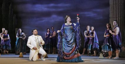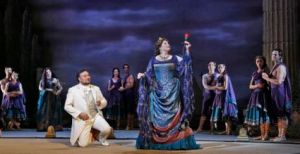 Nicola Luisotti led his orchestra in a reading that was, for the most part, delightfully fleet of foot – although the opening prologue seemed to drag slightly. Again, in the sound mix for the broadcast, the strings sounded thin with the overall sound balance favouring the voices. How much of this reflects what was heard in the house is hard to know. The brass rose to the occasion with some thrillingly imposing playing.