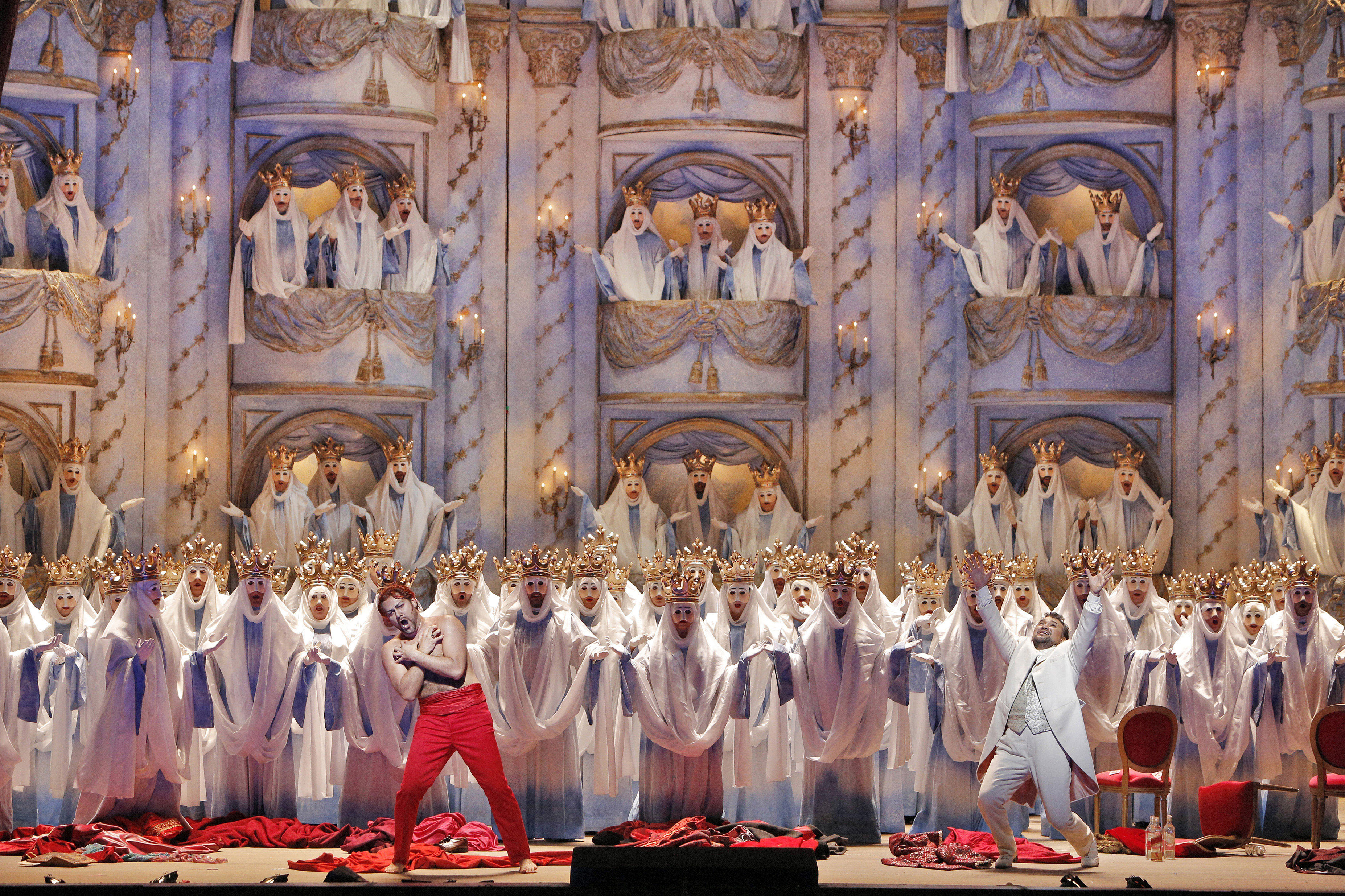 This Mefistofele is most definitely a show. It’s grand opera and its most insanely grand, with decadent sets and costumes, a massive choral sound and a big, brassy orchestra. The downside is that, occasionally, the personal can take second place to the spectacle – although Racette’s Margherita transcends this. The evening was capped by a magnetic account of the title role from a singer who succeeded in holding the stage even, with all the action going on around him. Undoubtedly an enjoyable way to spend the afternoon.