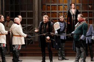 The house chorus was on its customary fabulous form, singing with strength and ideal blend – no war of vibratos here. The orchestra was also on exceptional form for Christian Thielemann, with shimmering strings, wind playing of distinction, and outstanding brass playing. Thielemann’s tempi were weighty but never seemed to drag, drawing out a big, bold sound from the pit. It did seem that at times the strings were recessed in the sound mix, at least as recorded – though of course in the house, the effect could well have been different, particularly in that celebrated acoustic. Tiziano Mancini’s video direction was efficient, and managed to capture the assembled forces, even if it did feel a little too fond of cutting away to the conductor, dragging us from the stage action more often than would be preferable.