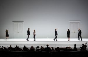 Among an ocean of cancellations this year, the Salzburger Festspiele stands out in its willingness to program two operas in a limited season. The fact that we are able to see this new production of Così fan tutte, directed by Christof Loy and streamed online by Arte, is testament to the vision of the festival and its acknowledgement that in a time like this we need art more than ever. Due the current sanitary situation, the work was performed without an intermission and was cut judiciously.