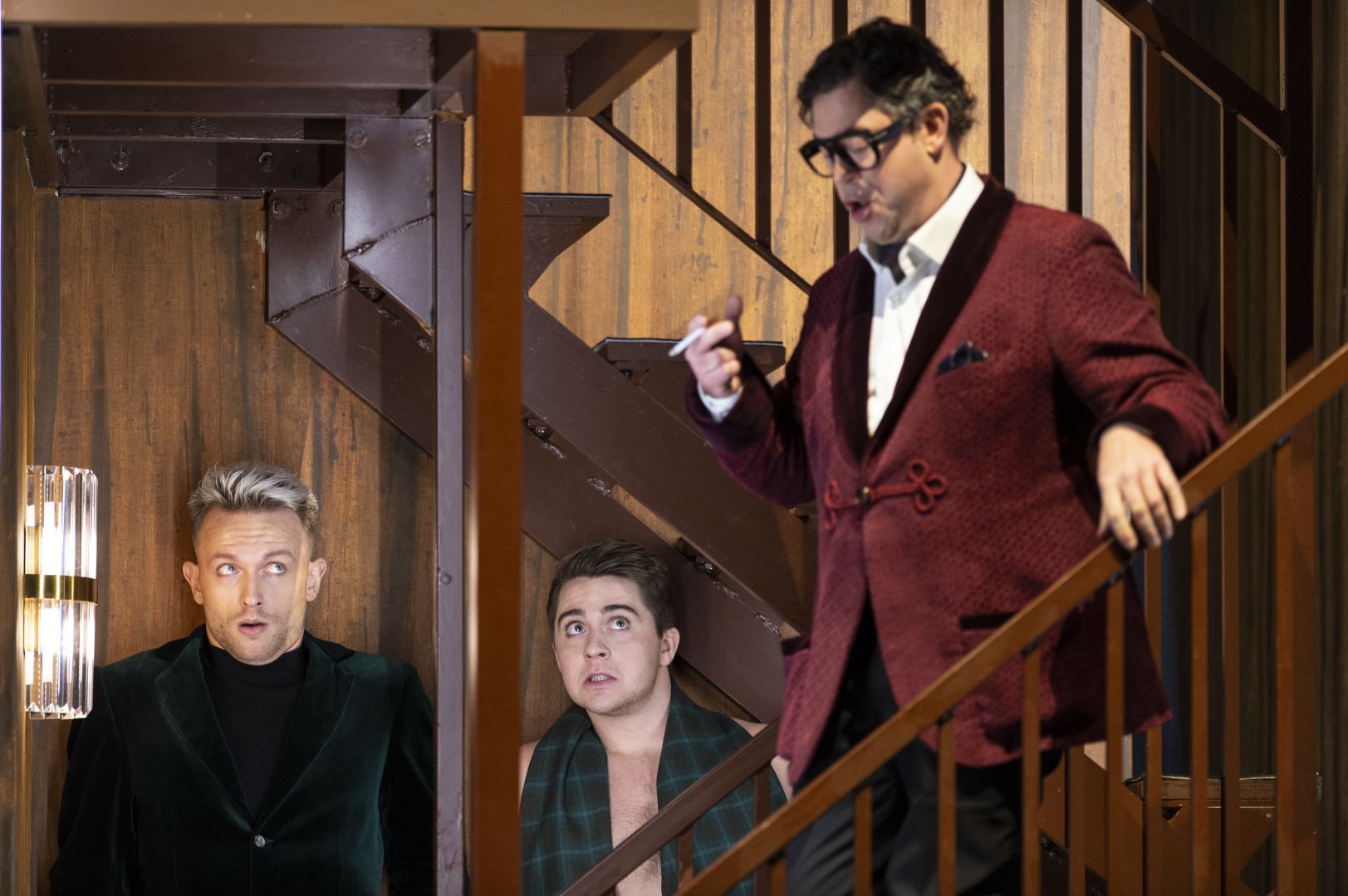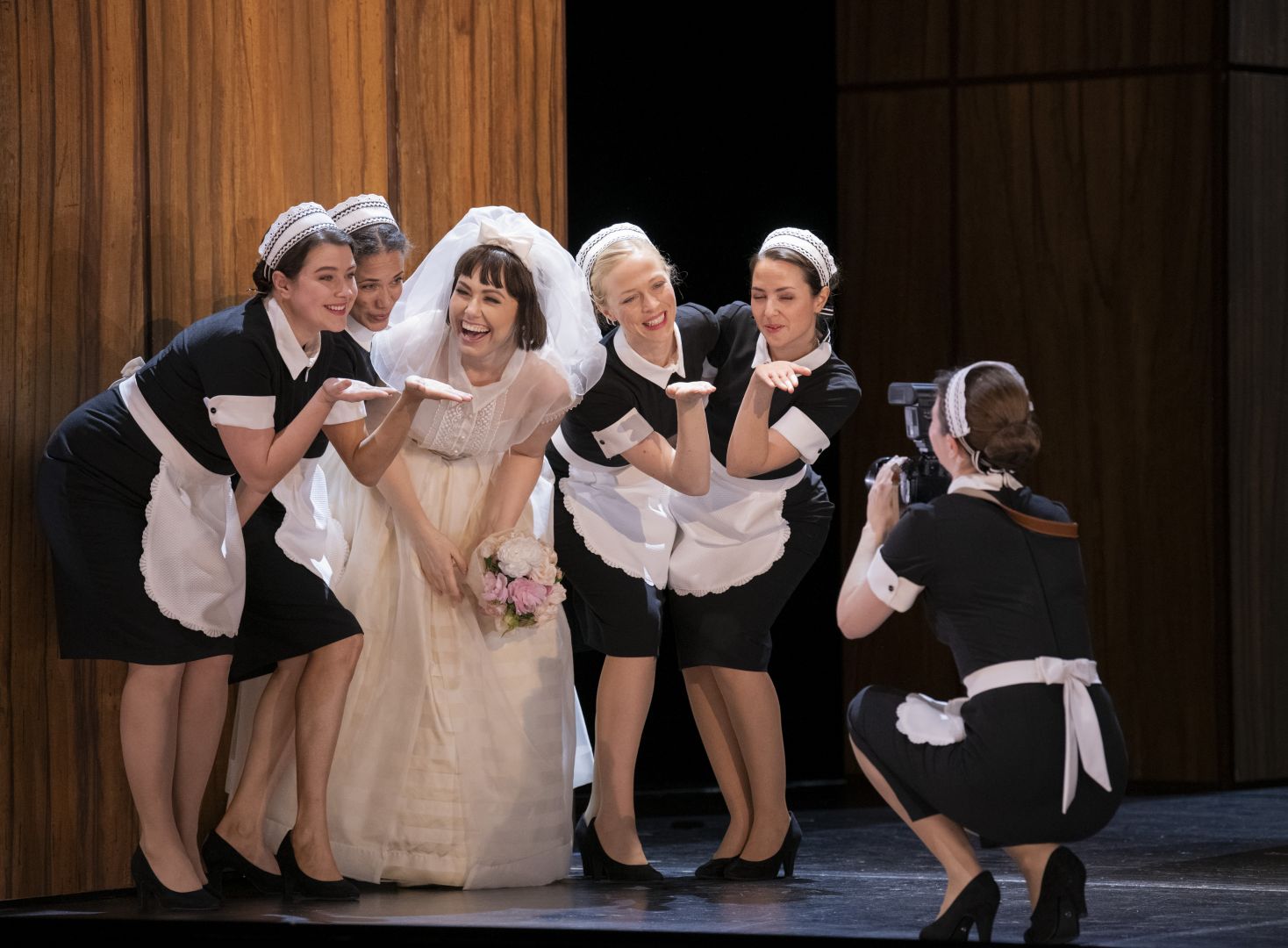 This is a highly active staging, making much of the cast’s youthful energy. I must admit to being perplexed by the synchronized dance moves in the Act 1 finale. It smacked too much of getting the cast to do something, rather than serving any dramatic purpose. Mijnssen also has Swanson appear dressed only in his underwear for much of Act 1. It was certainly not unpleasant to look at, but was perhaps taking Figaro’s suggestion to Almaviva of ‘Voi dovreste travestirvi…’ a little too far. The comedy came from the chemistry between the cast members, who seemed to be having the time of their lives, sharing their joy at being able to be on stage for us. Swanson’s entry as Don Alonso also caused much mirth, with him yelling at Berta and Bartolo.