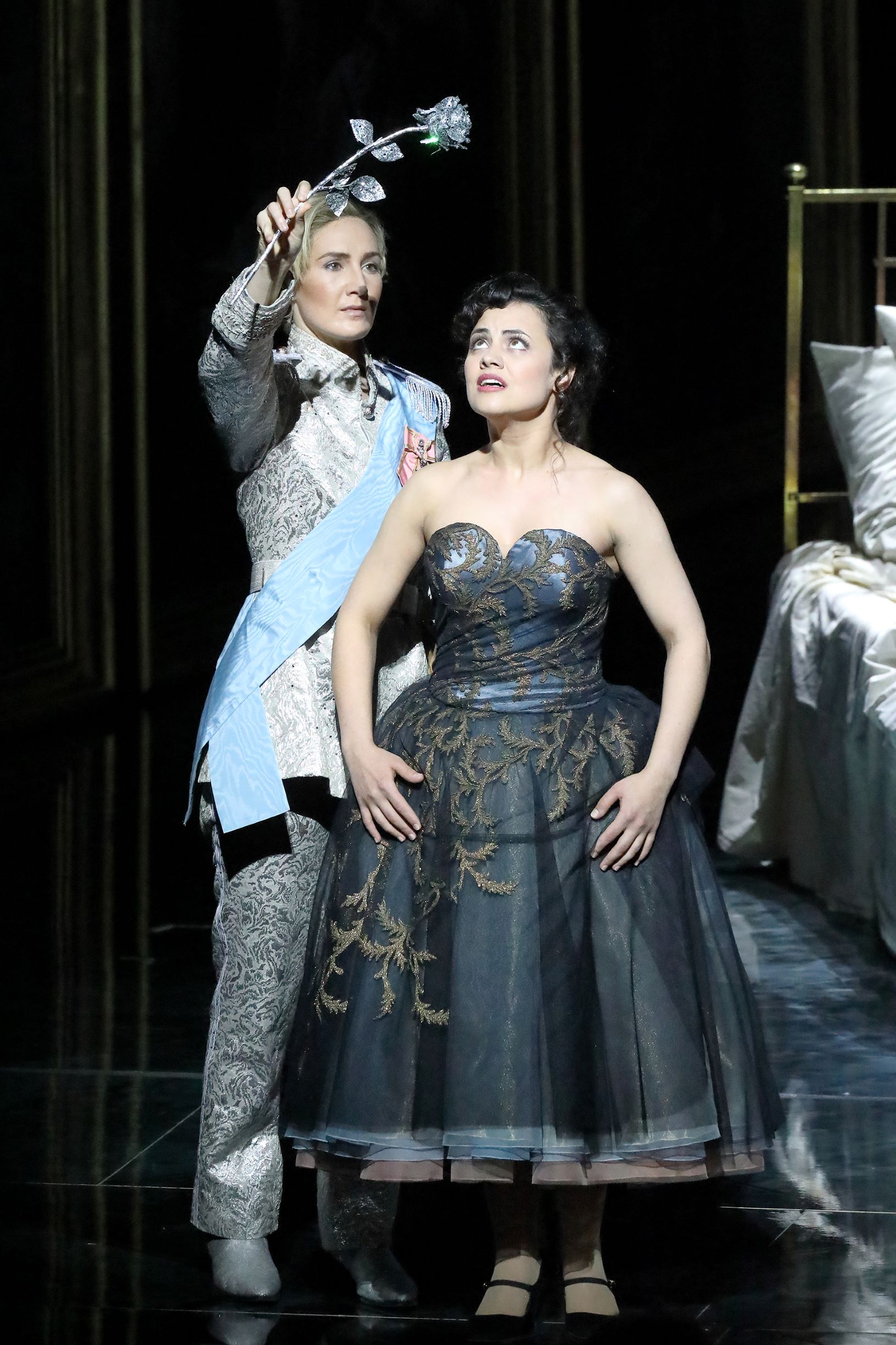 Yet, Kosky left me once again with a sense of a show that looks great, but that didn’t plumb the deep emotional range of this piece. However, this was certainly not the case with Marlis Petersen’s Marschallin. From her first appearance in a see-through nightdress, to her heart-rending monologue, Petersen became the emotional glue that held this performance together. Her face is so expressive and, thanks to Henning Kasten’s video direction, we were able to see all of the detail that Petersen brought to her assumption of the role. She truly sang off the text, using it to colour the tone and bring out so much emotion, the beauty of her peaches and cream soprano utterly ravishing to listen to. Hers was a human Marschallin of deep complexity, using the text to guide the emotions whether regret, unwilling desire, or a recognition in her closing ‘ja, ja’ that there may be another Octavian around the corner, and that the act of stopping the clocks was one of routine and not of exception. Indeed, her relationship with Octavian was less chaste and much more sexual than was the case in the Schenk staging, with the Marschallin unable to resist the temptation of grabbing Mariandel’s buttocks while chatting with Ochs in Act 1. There was a goodness to Petersen’s stage presence in Act 3, a realization that she could do nothing to stop losing Octavian to Sophie, but that she could make it easier for them – an idea I found extremely compelling.