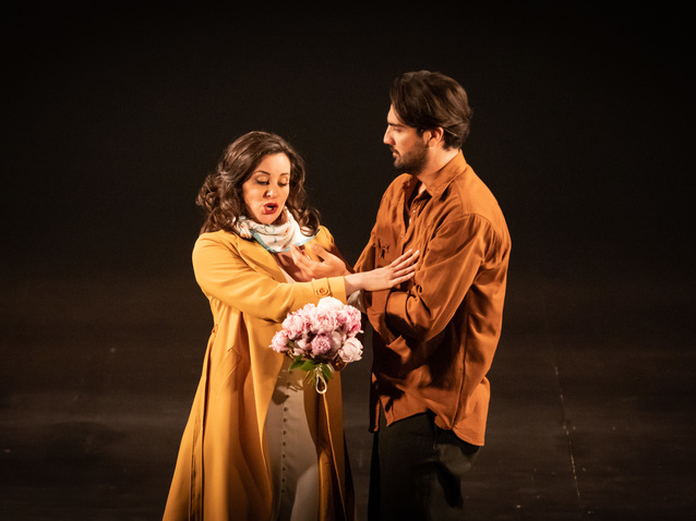 Even within the limited environment, Fredj created some memorable stage pictures, not least in Act 3 with spotlights ranged along the stage, reinforcing the idea of Cavaradossi’s ‘fake’ execution, and while there was no leap from the battlements, what Fredj gave us was equally convincing, leaving us with a sense that all that happened to the three protagonists was completely inevitable. It helped also that he had a pair of highly charismatic lovers in Joyce El-Khoury and Jonathan Tetelman. There was a genuine chemistry between them – particularly in the way that Tetelman’s Cavaradossi whispered instructions to El-Khoury’s Tosca not to betray him in Act 2, or Tetelman’s visible disbelief that the execution was fake but his desperation to give Tosca some comfort in the moment. Given the sanitary restrictions that made this production necessary, Fredj has made so much of little and given us an evening of high drama and gripping theatre.