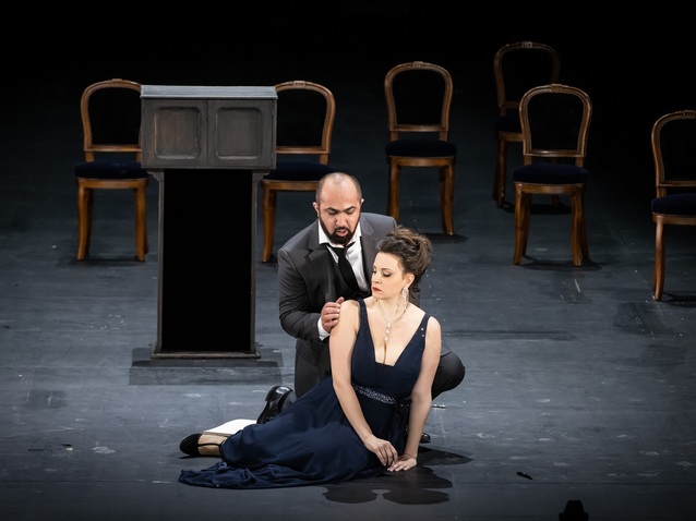 The lifting of restrictions on audience access to theatres in the French republic came a little too late for this new production of Tosca at the Opéra de Lille. The house had worked exceptionally hard to produce a show for transmission that was appropriately safe for the cast members. As a result, they were unable to host an audience – with the orchestra taking up the whole of the floor of the theatre, Alexandre Bloch conducting his band in the round, with the chorus in the first balcony. Instead, they chose to make the show free of charge on their YouTube channel for the next week, as well as broadcasting the production into cinemas throughout the Hauts-de-France region.
