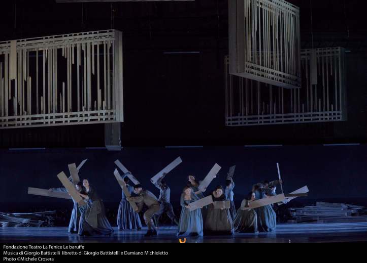 Enrico Calesso had clearly galvanized his forces with confidence. The evening had clearly been exceptionally prepared on both a musical and dramatic level – not just on stage but also in the pit. The Fenice orchestra proved themselves on this occasion to be an exceptional band. They relished in the uniqueness of Battistelli’s sound world, attacking those razor-sharp brass chords with impressive unanimity. Calesso also ensured that the stage-pit coordination worked seamlessly and allowed the text always to be heard. His tempi seemed sensible and he drew out an extensive range of colours from the band to do justice to Battistelli’s vision.
