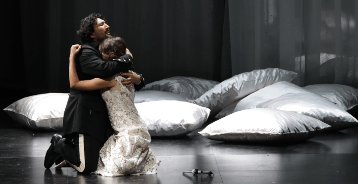 The staging was confided to Matthias Hartmann, the most positive aspect of which is that he allowed the narrative to unfold logically.  His was a rather inconsistent staging.  At some points, he furnished the stage with minimal furniture, four large light structures were moved around to create a visual framework.  At others, for example in the Act 2 entertainment or in the closing gambling den scene, the stage was more amply furnished – Act 2 in particular gaining applause from the Scala public.  Costumes (Malte Lübben) were of the period, adding a slightly incongruous touch to the rather harsh visuals with the lightboxes.  The chorus was generally parked unimaginatively at the front.  There were some random gyrations by dancers at some various points, while a person, presumably representing the Comte de Saint-Germain, showed up at various points of the evening to make a point.  That said, Hartmann did give us some memorable stage pictures – the way Liza threw herself into the river was impressively vivid.  Similarly, the Countess’s return from the dead was suitably atmospheric, even if it meant getting temporarily blinded by spotlights directly at the audience. The principals also spent a fair bit of time emoting at the front.  Hartmann’s staging is one that did the job but also felt inconsistent and something of a missed opportunity.