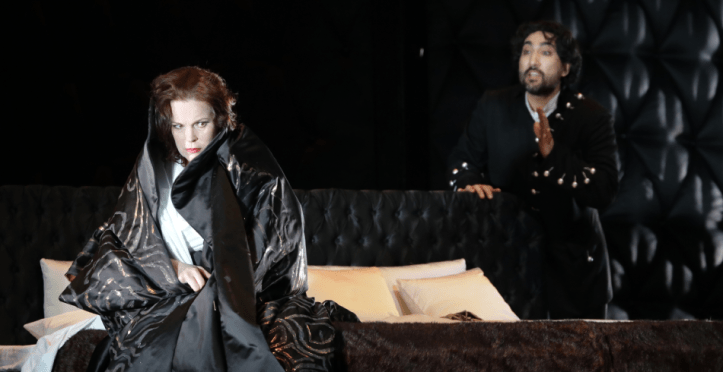 Najmiddin Mavlyanov was an interesting Herman.  At first, it sounded like a mainly lyric instrument being pushed to sing a role much bigger than his current resources could cope with.  Tuning at first was consistently below the note, with the top effortful, seemingly emerging through sheer willpower.  As the evening developed, he found some genuinely warm and affectionate tone in his duets with Liza and tuning improved.  Yet, perhaps due to Hartmann’s direction, I was never completely convinced of Herman’s deadly singlemindedness.  Rather, Mavlyanov’s Herman felt completely reasonable, an everyman doomed to a tragic end who ruined the lives of those around him.  An interesting reading certainly.