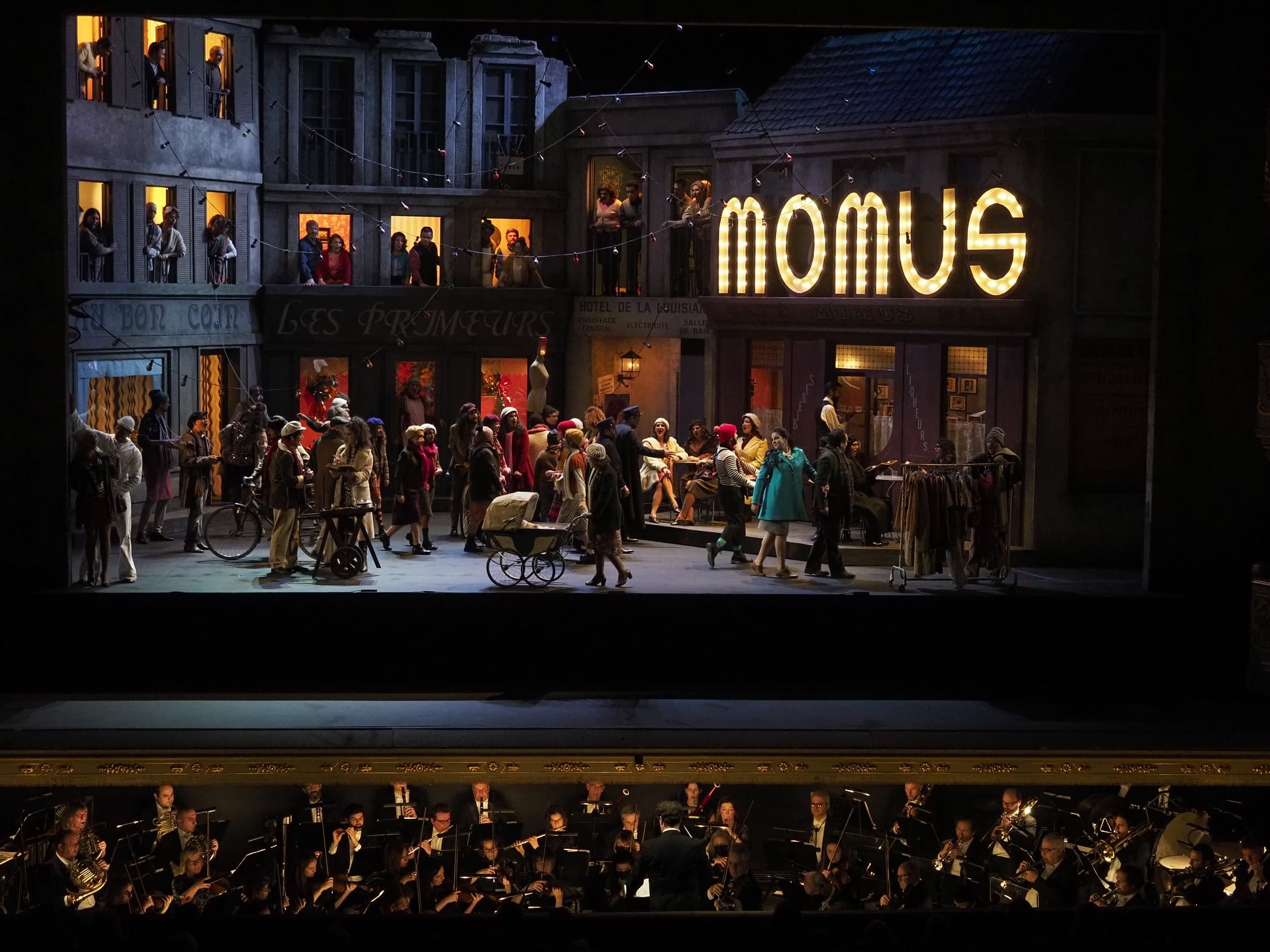 While being seated at the front of the Plateia meant that I gained so much detail from the interactions between the principals, it also meant that I was also able to bask fully in the wonder of Puccini’s glorious orchestration. Especially when played as fabulously as the Orquestra Sinfónica Portuguesa played it for Domenico Longo tonight. He was able to draw out a deep pile carpet of string sound, while the brass playing had such uncommon warmth and depth, that when they opened up for those many climaxes they bathed the room in a wonderous golden glow. Longo’s tempi were generally sensible although things ground to a halt somewhat in ‘Mi chiamano Mimì’ and in Musetta’s waltz song. His pacing for Act 4 also felt on the slow side, luxuriating certainly, but at the risk of sagging tension. Overall, however, it was an idiomatic reading, supportive to the singers and allowed the evening to work its magic. The house chorus, prepared by Giampaolo Vessella) was on deliciously lusty form, singing with satisfying firmness of tone, and clearly loving being back on stage and in costume. The children’s chorus was similarly enthusiastic and had clearly been well prepared by Vítor Paiva.