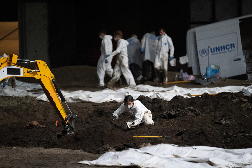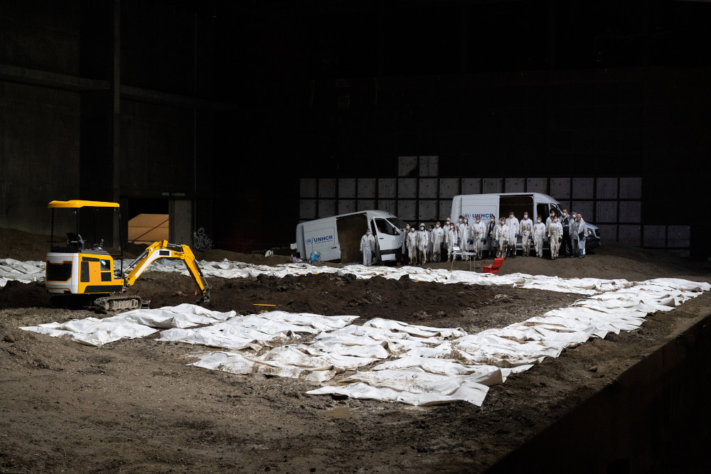 The image of a mass grave feels particularly timely given what we have lived through over the past two years. Whether seeing those mass graves of pandemic victims in Manaus or, more recently, victims of Russian atrocities in Bucha or Mariupol. The presence of trucks marked with UNHCR is a reminder also of where hate can lead us – particularly if we bear in mind how the rhetoric of far-right politicians, such as Priti Patel in the UK, breeds on hate and dehumanization.