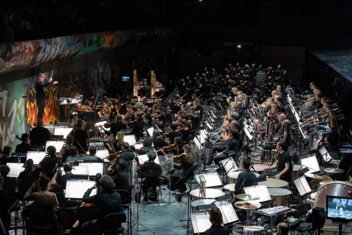 When Romeo Castellucci’s staging of the Mozart Requiem was staged at this very festival back in 2019, it was widely received as a revelation. This staging of Mahler’s second symphony, creating a show entitled ‘Résurrection’, is in many respects a sequel to that seminal production, which has since been seen all over the world. Resurrection in this case refers not only to Mahler’s symphony and its subject matter, but also to the venue. For this production, the festival joined forces with the nearby city of Vitrolles to renovate the Stadium, an arena which was constructed in 1994, only to fall into disuse four years later. It’s a striking building, a block of concrete now covered in graffiti, situated in a red-soiled landscape that could be on the outskirts of Brasília as much as in Provence. While striking from the outside, the venue on the inside brings a new meaning to the idea of suffering for art – the room was extremely hot, the rake vertigo-inducingly steep, and the seats were hard and very close together which, in a time of plague and given the French public’s reluctance to wear masks, was perhaps less than optimal, despite the extremely inspiring nature of the building itself. Yet as soon as the show began, one forgot about the discomfort and the risk of catching plague and one was completely and overwhelmingly brought into a work of art of vision and originality.