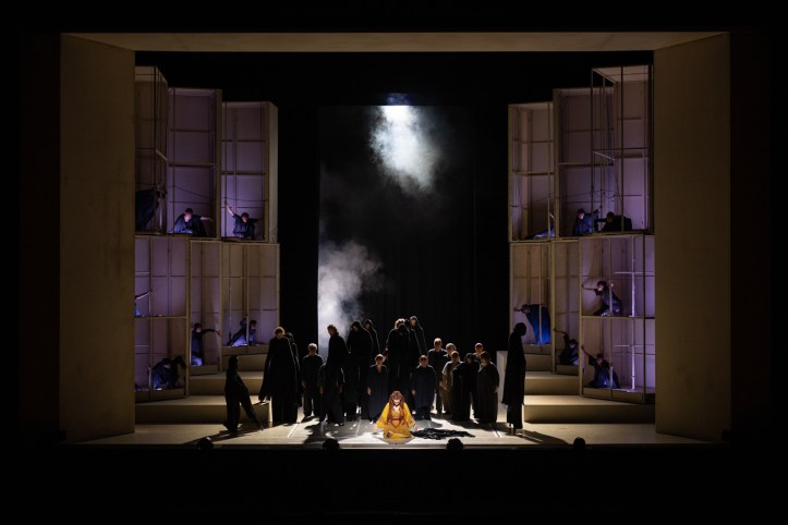Cherkaoui’s staging is now a familiar quantity.  Indeed, I attended the Munich premiere back in 2019 and it has since also been released on DVD.  As a noted choreographer, it’s understandable that Cherkaoui would wish to incorporate dance into his staging – and here, as in Munich, the staging is enhanced with the presence of Cherkaoui’s own Eastman Dance Company from Antwerp.  Cherkaoui gives us much to look at, the constant activity of the dancers really does heighten the sense of the music.  The most impressive moment comes in Act 3, where shady figures, dressed in black and on stilts, are fought off by Hercule and Admète.