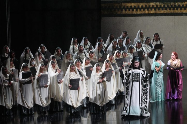 There was so much to enjoy in tonight’s Nabucco.  The quality of the orchestral playing, the inspiring choral singing, and a staging that did what it needed to do.  The solo singing also gave satisfaction – particularly in Mimica and Costanzo, while Mureva was always fearless and Gazale sang with generosity.  Yes, I regret to mention that the performance was hampered by some of the behaviour of the audience – the house really does need to take a stronger line against cellphone use in the auditorium.  Also, rather than allowing latecomers to take their seats in the Platea once the show has started, instead they could reserve a box where they can be accommodated without disturbing others.  This is a house with one of the greatest acoustics in the world and getting to hear house forces of this quality here is indeed a privilege.  The Massimo has made this production available for streaming via its website, and for those who wish to watch the alternate cast can do so here.