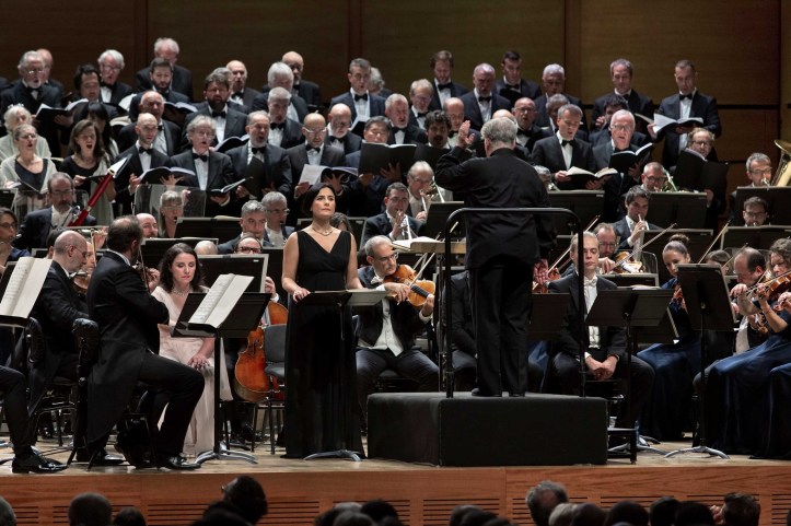The chorus, prepared by Massimo Fiocchi Malaspina, made a tremendous noise in the ‘Tuba mirum’, joined by the off-stage brass ringing across the hall. They intoned the ‘Rex tremendae’ with declamatory resonance, and tuning in the unaccompanied section of the ‘Libera me’ was spot on. The sopranos were somewhat brittle in tone, but the mezzos were nicely fruity, the tenors shone brightly out of the texture, and the basses anchored the choral sound with solid warmth. The discipline with which they sang was admirable – particularly as they negotiated the tricky contrapuntal writing of the ‘Sanctus’.