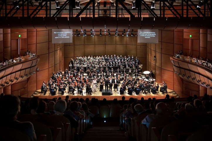 Today marked my first visit to the Auditorium di Milano, and indeed my first opportunity to hear the Orchestra Sinfonica di Milano and its chorus. The organization used to be called La Verdi, but has now shortened its name to reflect its home in the Lombard capital. The Auditorium is a handsome venue. Formerly a movie theatre, the seats are extremely comfortable and the hall sounds quite wonderful – the generous climaxes had lots of space to bloom within the acoustic.