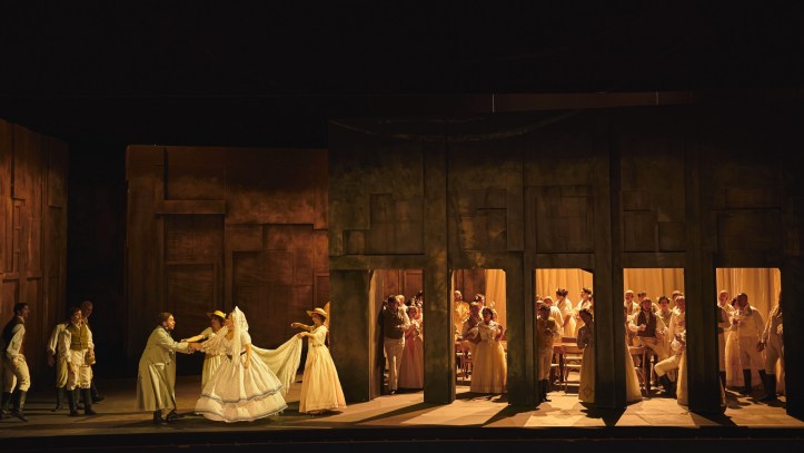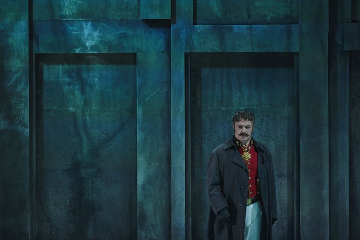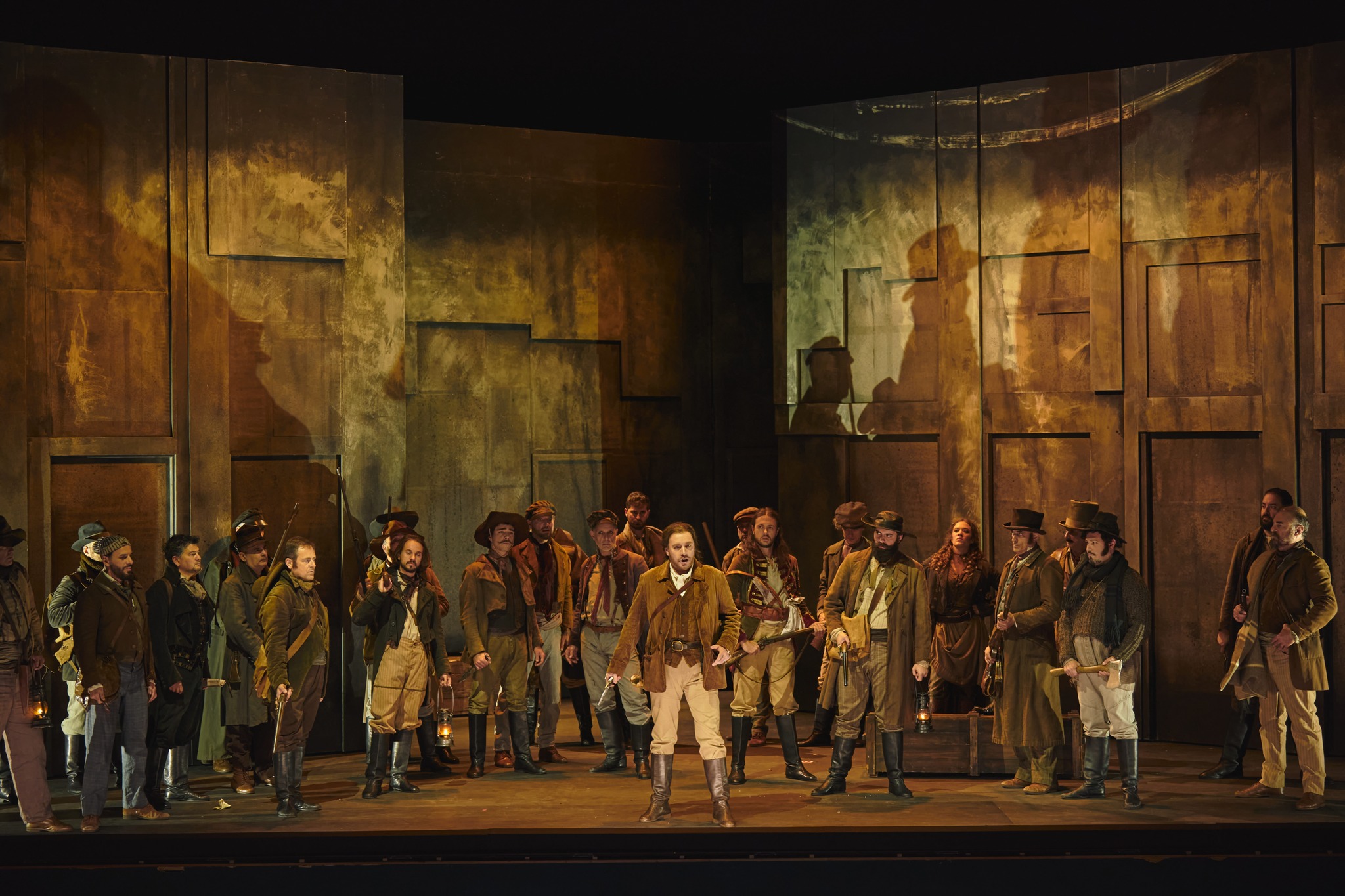 The plot of Ernani can certainly be confusing to first-timers, with mortal enemies becoming friends, and then back again. It’s a shame, then, that my neighbours in the row behind me didn’t stop talking throughout the show, disturbing everyone around them, despite the clarity of Muscato’s storytelling. Personenregie did contain a considerable amount of standing and delivering, not inappropriate for a bodice-ripping romp such as this. Yet there was a fluency to Muscato’s direction that worked. The costumes (Silvia Aymonino) initially looked somewhat California gold rush, but later were more traditional nineteenth-century operatic garb. As a result, this was an efficient framework for the action that had clearly been thought through and was well rehearsed.