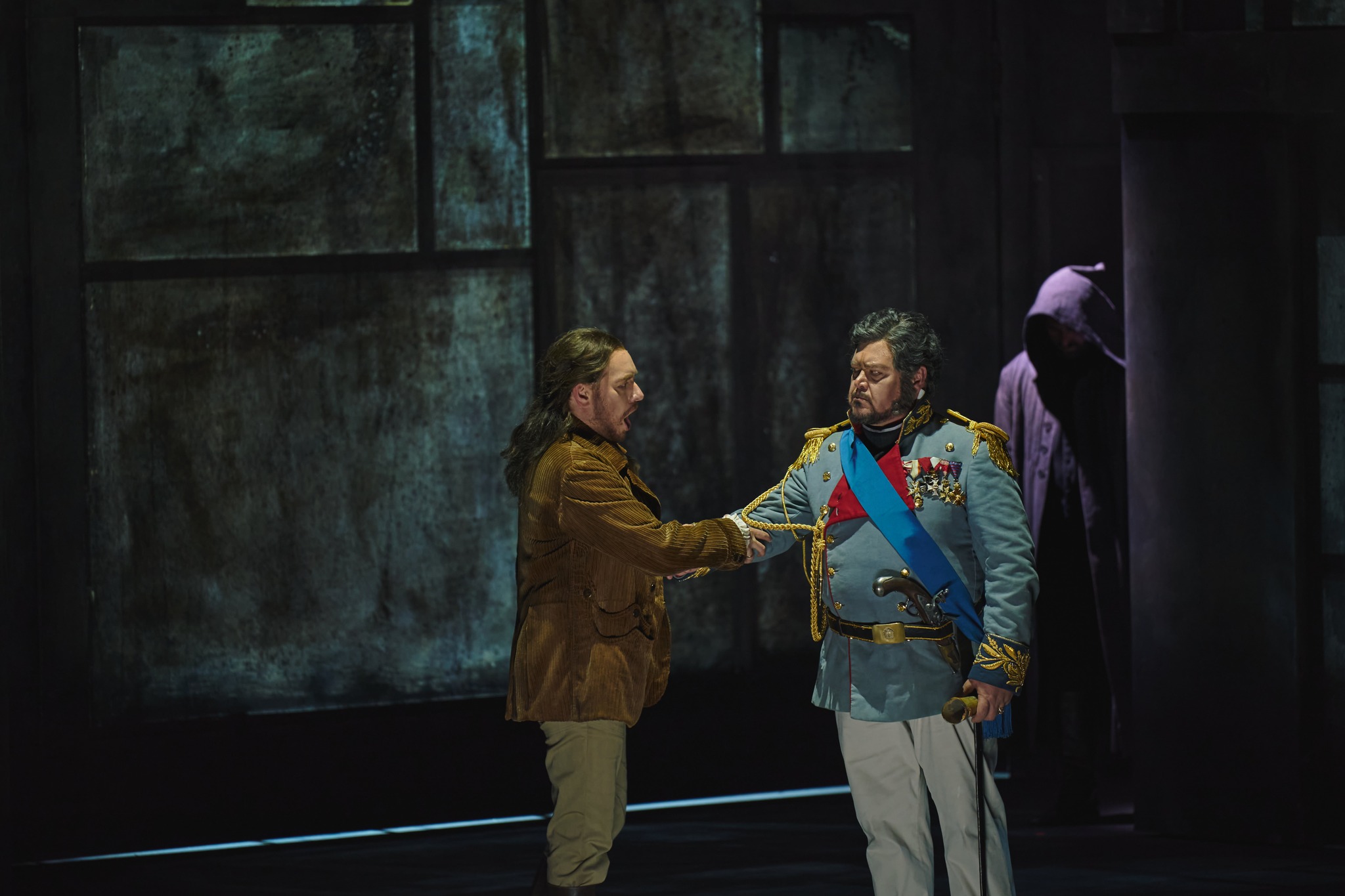 Roberto Frontali brought his nobility of line to Don Carlo, giving us a masterclass in long, legato phrasing. He also used the text fully, spitting out ‘Tu se’ Ernani’ with venomous determination as he recognized his opponent. The voice does unfortunately tend to greyness at lower dynamics, but Frontali’s ability to spin those long phrases gave so much pleasure. As indeed did Vitalij Kowaljow as Silva. He was a massive stage presence, his bass endowed with powerful resonance and a warm, complex tone. The voice is huge, filling the house with ease, with tone that is both rich and absolutely solid. In the remainder of the cast, I was particularly impressed by Joseph Dahdah as Don Riccardo. He revealed a very well-schooled tenor, handsome in tone, with an elegant line. Undoubtedly a name to watch.