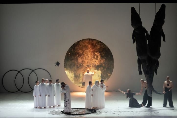 Tonight’s Rheingold made for an extremely exciting start to this new Ring.  Certainly, the quality of the orchestral playing was simply superlative, while the singing across the board gave much satisfaction.  I left the theatre with a sense of wanting to see Castellucci’s staging again.  I did find that for much of the evening, I spent a lot of time reflecting on what was happening and how it was achieved by the cast, rather than allowing myself to be absorbed by it.  For this reason, I do feel that it requires a second viewing to fully appreciate it.  The run is completely sold out, but there will be a chance to see it when the production will be streamed on demunt.be from November 20th.  This Rheingold is a work of immense theatrical audacity, performed by a cast that is completely committed to Castellucci’s vision of the work, and supported by an orchestra on glorious form.  The evening was received with an enormous and generous ovation for the entire cast.