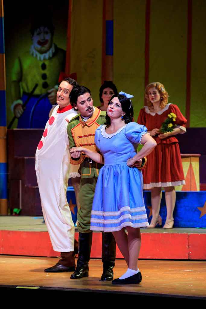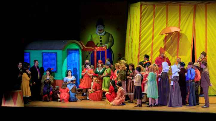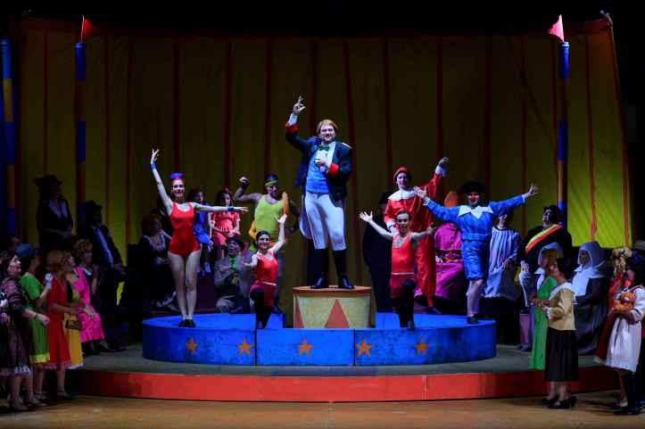 The production was confided to Victor García Sierra and, as far as I can recall, is my first experience of his work.  He sets the action in the world of the circus, complete with people on stilts and a large circus tent that takes up the centre of the set.  It’s certainly a colourful and playful setting for this most colourful and joyful of operas.  The direction of the chorus was rather inconsistent.  At times, they were simply parked on stage to engage in some occasional light gyrations.  At others, such as when the women tried to seduce Nemorino after discovering his fortune, the direction of the chorus was considerably more vivid.  García even asked Lavinia Bini’s Adina to cycle on stage and dispatch some elegant lines in her duet with Dulcamara in Act 2 – which she did without ever compromising her breath control.