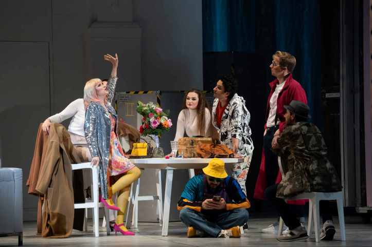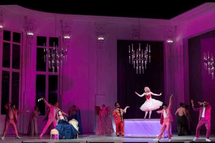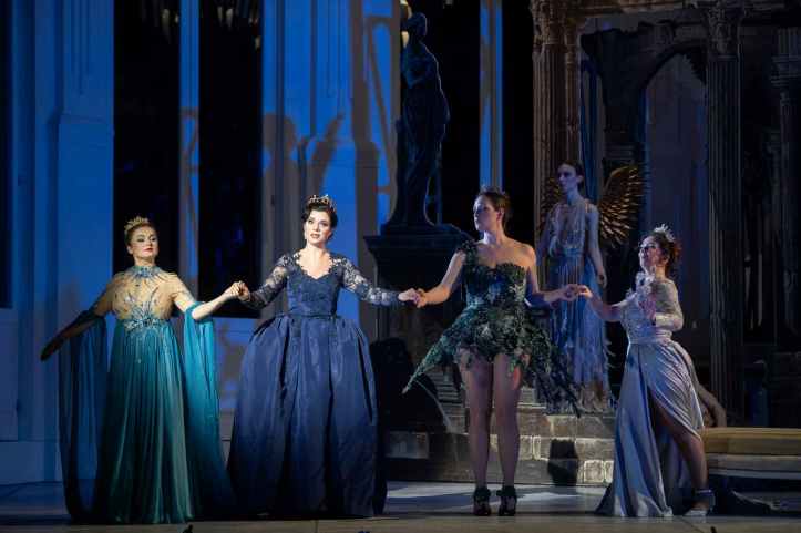 Andrea Galli was an equally game presence as the Tanzmeister, working it around the stage in a terrifically extrovert manner.  Galli made a real attempt to communicate the character through the text, his bright, well-focused tenor full of character.  Gurgen Baveyan sang the Harlekin with genuine eloquence, sung off the text with warmth and generosity of phrasing – and in a very handsome baritone.  The remainder of the cast reflected the admirable standards of the house.  Christian Collia brought a similarly bright and lyrical tenor to Brighella, in good German, while Vladimir Sazdovski was a rich and resonant presence as Truffaldin.  Francesco Samuele Venuti made much of little as a very handsomely voiced Lakai.  We also had a most agreeable trio of nymphs with Olga Dyadiv bright and crystalline as Najade, Eleonora Vacchi’s piquant and firm mezzo as Dryade, and Chiara Notarnicola’s attractively milky soprano as Echo – all three blended charmingly together.  Peter Harl was an appropriately sardonic Haushofmeister.