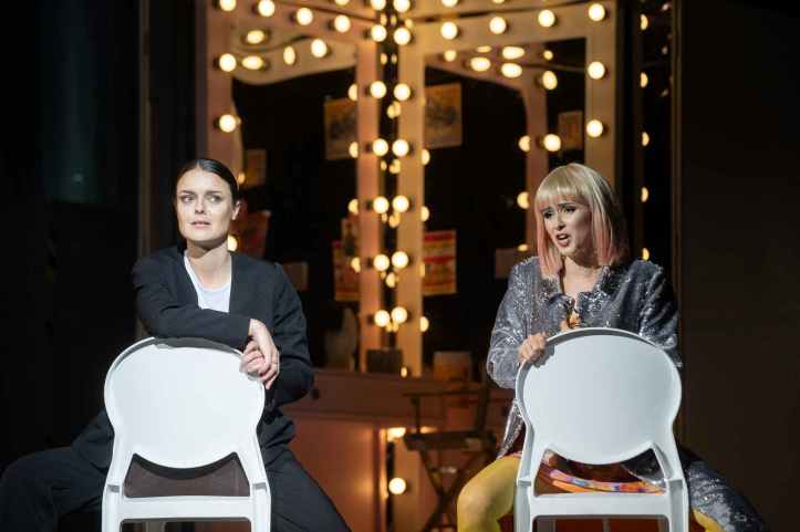As is usually the case here, the run was double cast, with different singers for the roles of Ariadne and Zerbinetta.  I saw Margarita Vilsone in the title role, while Simone Schneider, a glorious Kaiserin in Stuttgart recently, was in the other cast.  The Latvian soprano has a burgeoning career in the Strauss roles, having appeared in a number of German theatres.  She brought an appropriately statuesque presence to her role, combined with some witty comic timing in the prologue.  She filled her ‘ein Schönes war’ with so much emotion, pouring her heart out for us, searching for, and bringing out, meaning in the text and the music.  The voice isn’t the most sheerly beautiful to have essayed this role – there’s a steely edge to it and her intonation is woozy, sitting around the note, sometimes flat, sometimes sharp.  To my ears it sounds like a lyric instrument being pushed to be a few sizes bigger, with the core support not quite strong enough to sustain the volume that she aims to produce.  Vilsone did give so generously of herself, and in that respect, I found her performance deeply moving, but the technique does sound like a bit of a work in progress.