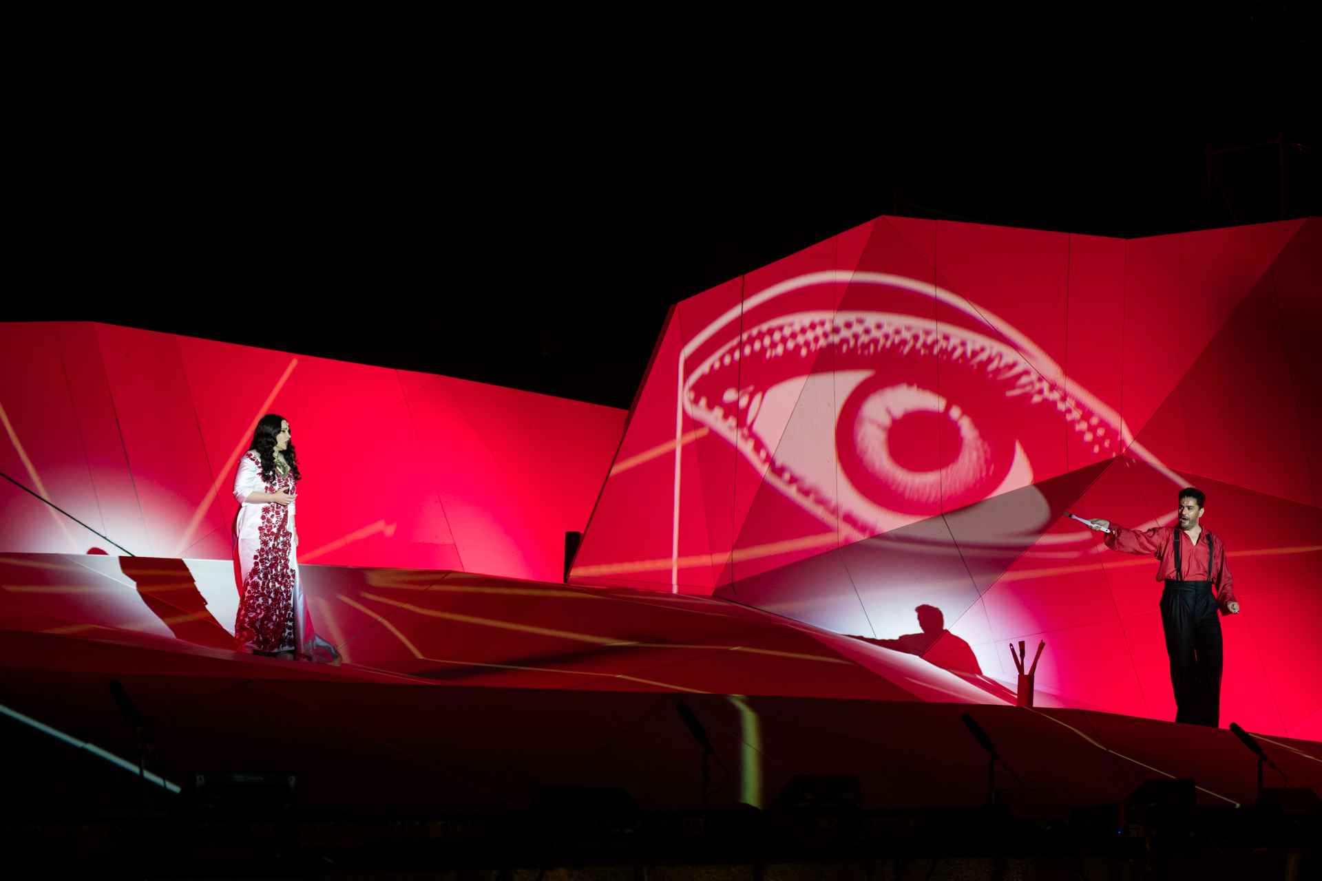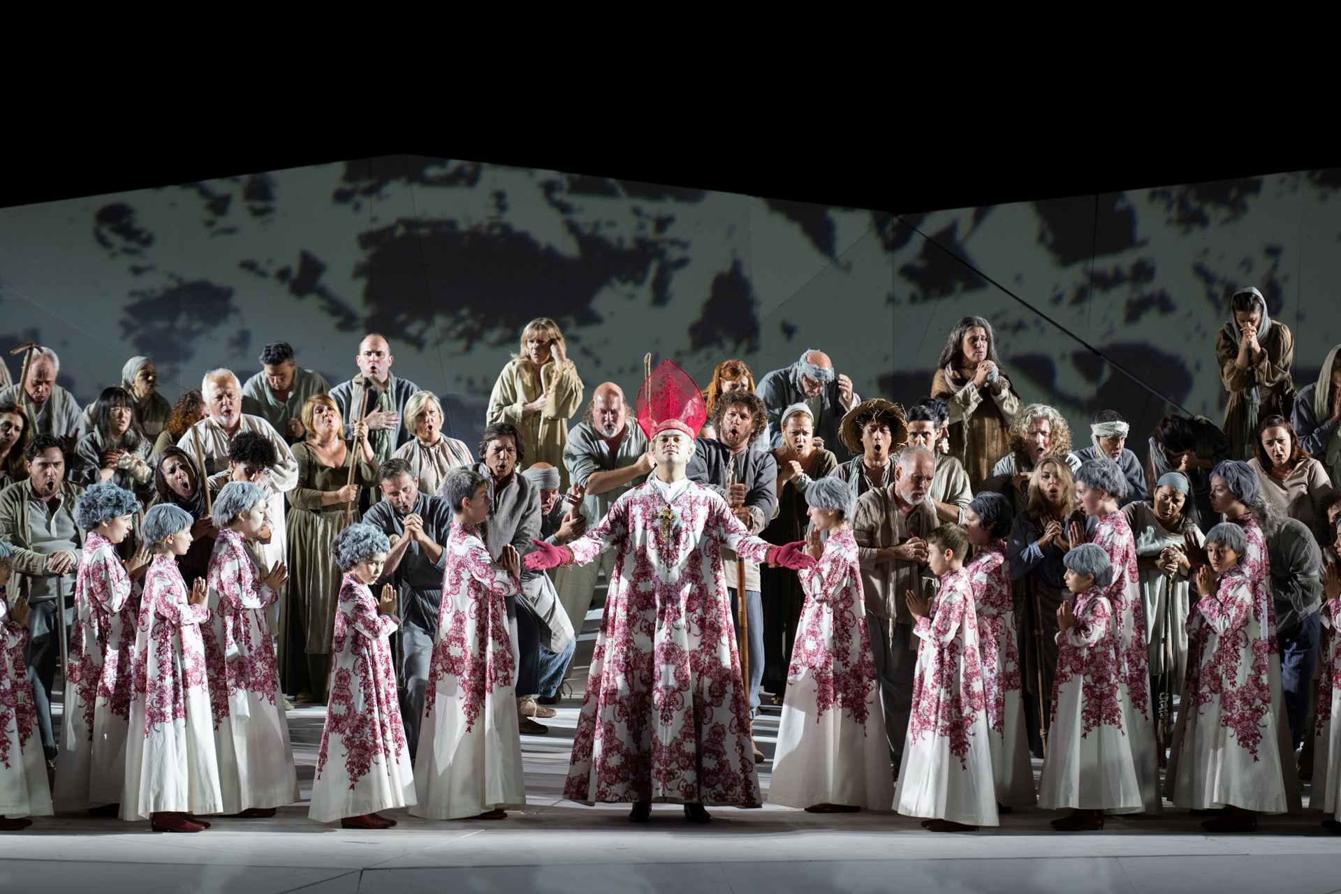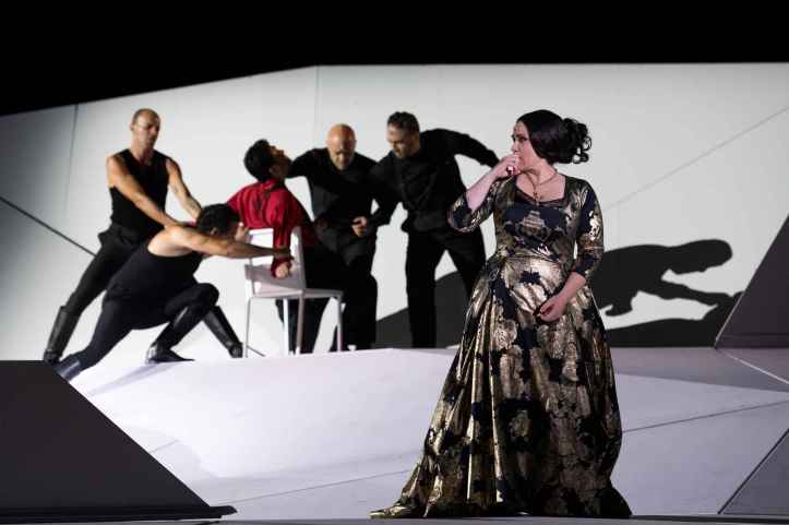 This is, of course, an opera that this house owns, the house forces having given the world premiere over a century ago. One would imagine that the musicians of this orchestra would be able to play this score in their sleep. Antonino Fogliani’s reading did have some interesting aspects. He brought out a lyric beauty in the score that I found attractive to listen to. The amplification helped with bringing out the fragrance of Puccini’s orchestration, with tinkling celesta and piquant clarinets, in a way that might not be as apparent in a conventional theatre. And yet, Fogliani gave us a reading that was so slow it completely removed the drama from the piece. Scarpia’s entrance in Act 1, a moment that should crackle with drama, was completely numbed. Compare that to Andrea Battistoni in Munich a few months ago, who made it sound absolutely terrifying. That constant twisting of the screw of tension in Act 2 was similarly absent, the reading positively comatose. Worse, in Act 3, he lost control of the orchestra completely in the introduction to ‘e lucevan le stelle’ which momentarily fell apart. How this can happen with an orchestra than knows this score inside out is a mystery. The choruses were respectable. The children were lively, while the adult sopranos and mezzos vibrated generously.