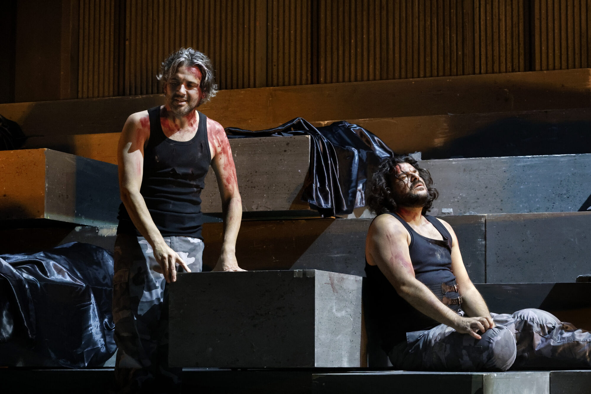 Karagedik sang Oreste with strong, masculine tone. His ‘Dieux qui me poursuivez’ was sung with real strength, the voice powering through, the text sung with so much feeling – those declamations of ‘Dieux, auteurs de mes crimes’ given such compelling force that one could not fail to be brought into Oreste’s world. The top was free and easy, capable of impressive amplitude. Karagedik was also fearless in his physicality, throwing himself around the stage with genuine abandon. The warmth between Karagedik and Van Mechelen’s Pylade was real and genuine, but I did wish that Villalobos had taken it a step further and explored the love between these two men more. That aspect felt underdeveloped in this staging. Van Mechelen sang Pylade’s music with the textual eloquence and beauty of line that one has come to expect of him. He soared with effortless ease and beauty in ‘Unis dès la plus tendre enfance’ displaying his supreme command of the passaggio, while his ‘Divinité des grandes âmes’ saw his tenor shooting out into the auditorium with forward placement and clarity of the text.