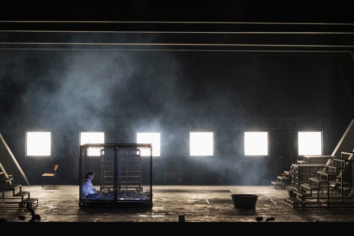 The evening has the only intermission after the first scene. This also made the production feel rather lopsided and lose momentum. I can imagine that working with the Staatenhaus has some limitations in terms of set management. That said, as far as I could see, there were no apparent reasons why the intermission needed to be there, or indeed was even required at all, given the relative brevity of the work. Baur also started the fourth part with a reading from a poem by Ingeborg Bachmann, one of the greatest writers in the German tongue, but again it was unclear why. It left me with a sense that Baur had started his production confidently, yet it had also lost its way as the evening progressed. If he had stayed on the course he had charted initially, I would have found it an appropriate framework to the action. Yet by adding more layers that seemed to be barely explained or explored, it felt that Baur had lost his command of the narrative, rendering it cloudy.