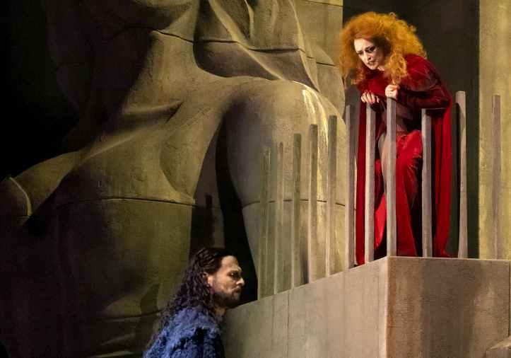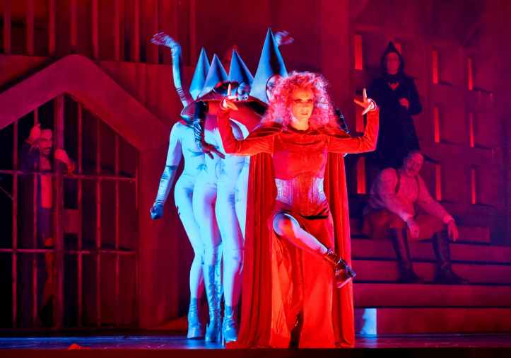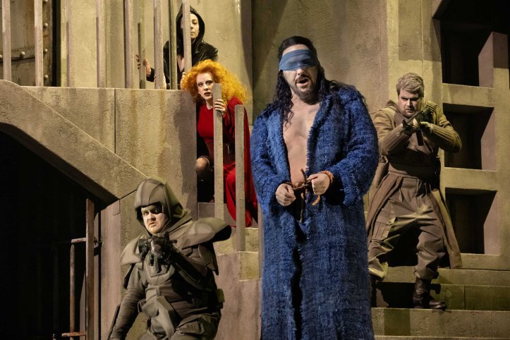 Mondtag’s staging is undoubtedly very impressive to look at and certainly, in its horrific grimness, gives us a very good show. He demands a lot, physically, from his singers. Allison Cook’s Salome hardly stops moving, her energy is impressive, although I was worried about her knees in the way she jumped up and down obsessively in her platform heels. And yet, I’m not always convinced that, on deeper consideration, that Mondtag resolves the issues that he raises. There’s certainly a conflicted sexuality here between Salome and Jochanaan, a sense that he could succumb to her sexual approaches. At the same time, with his single-minded religious obsession and determination to convert her, it struck me he felt that his religiosity could override her sexual obsession with him. Similarly, during the dance, we saw Herodes drag Salome to the cistern, following which screams emerged, suggesting that his response to the dance was for him to sexually assault her. Yet again, it raised the question of whether he deliberately did so in front of Jochanaan, or if we were instead watching a non-linear narrative and the dance was a flashback to an earlier time. Upon reflection, I’m not quite sure why Herodias first insisted that Salome didn’t dance, but then mocked and encouraged her to dance during the Schleiertanz. This just reinforced the impression that I left with: that the staging as a whole doesn’t quite add up. Perhaps, I’m simply overthinking things. Taken on surface level, Mondtag gives us a high-energy, highly visual show, yet one that on reflection doesn’t seem to equate to the sum of its parts.