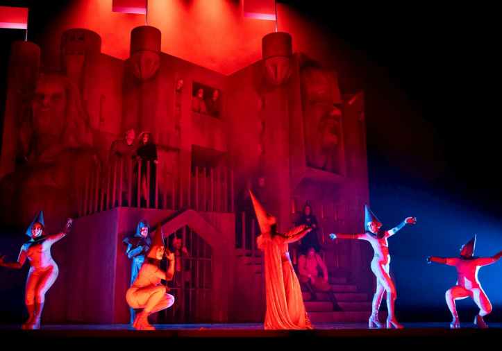 That said, Mondtag does give us some pertinent aspects to consider. One of those is the creepy manifestation of Herodes, complete with moustache and combover. Seeing the Jews running away with their suitcases packed was a reminder of the horrors that happened between Strauss’ opera being premiered and the present day. He also gives us a feminist reading, with Salome and the danseuses taking over the palace in the final scene, taking revenge on Herodes for his abuse of Salome. Both of these aspects are very convincing and make for an interesting take on the drama. Again, watching it on a surface level would offer a number of rewards, particularly as Mondtag’s personenregie is vivid and compelling. It’s just that I remain unconvinced that it stands up to deeper reflection.