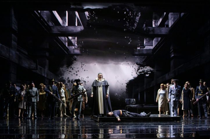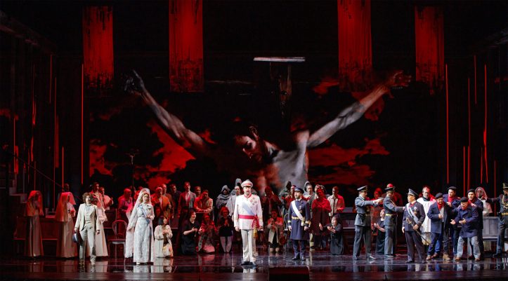 I must admit that this Don Carlo is the best thing I’ve seen by Livermore, a director who hasn’t always enthused me. Here revived by Diego Mingolla, Livermore gives us a staging that truly illuminates the libretto, making the interactions between the characters credible and vivid. He sets the action in what appears to be the Spanish State during the 1950s Francoist era. The sets and costumes, complete with a car that carried characters across the stage, reflected that period, yet it didn’t shirk from showing the brutality and horror of the clerical cruelty that has blighted the history of the Iberian Peninsula over the centuries. The auto-da-fé was accompanied by torture scenes reminding us of the horror inflicted in the name of religion. Similarly, the big confrontation between Filippo and the Grande Inquisitore was extremely powerful, because the power of the church over the king, and his status as a puppet of religion, was thrillingly brought to life through the physicality and vocalism of Timo Riihonen and Mika Kares, the latter unafraid to physically overpower the king, reminding him of his true place.