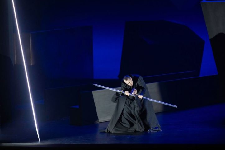 Audi’s is an extremely visual staging, focused on creating striking stage pictures. The sets, by Michael Simon, are minimalistic, constructed around two large blocks for Brünnhilde’s rock and the Norns and Rhinemaidens’ scenes that danced balletically around the rotating stage; while the Gibichung hall, was set in a place where blocks were hung from the ceiling and also circulated around the floor. As was in the case in Siegfried, Audi made use of video, by Chris Kondek, at the start and end of each act, showing children drawing and acting out aspects of the plot. In so doing, perhaps Audi was attempting to remind us of how universal stories of heroes and villains are, although I’m not quite sure how a story about a woman being abducted and forced to marry someone would be appropriate for children. Furthermore, this idea of a child-like story coming to life also felt rather underplayed, as if added on at the start and end of each act, and felt disconnected with the clean lines that Audi and his creative team gave us to look at. It was interesting how Audi parked a replica of the World Ash Tree on one side of the proscenium, and what I presume to be Wotan’s spear on the other. Yet again, it felt that these were placed there for visual interest, rather than engaged with.