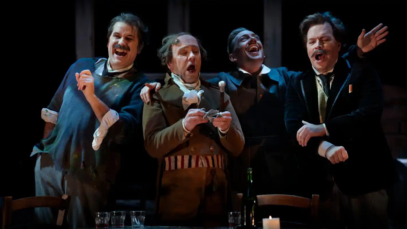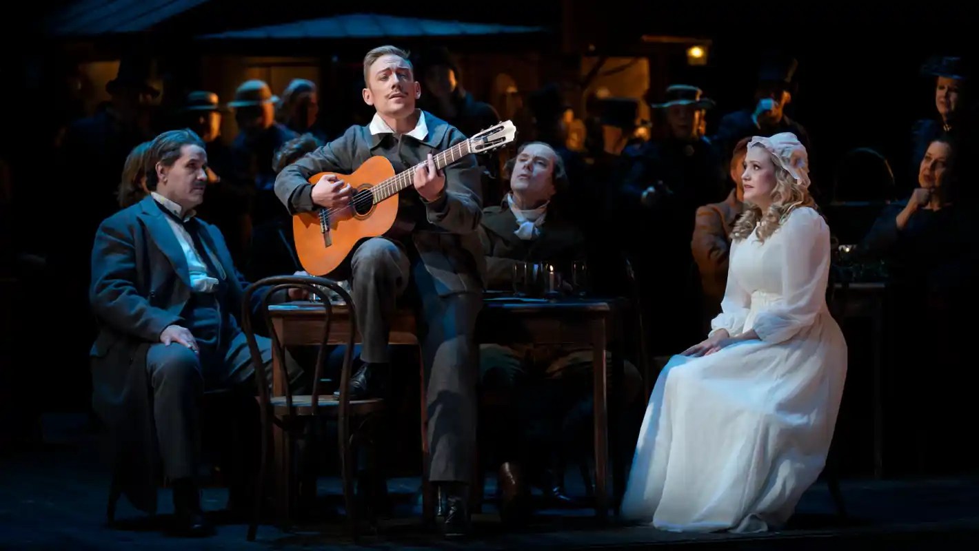 Cura’s staging takes a very interesting angle on this, one of the most-performed titles in the repertoire – and tonight celebrating its thousandth performance in Stockholm. Rather than setting it in Paris, Cura instead sets it in the Swedish capital. He wouldn’t be the first to change the location of this opera – after all, there have been productions of bohème set in outer space. Yet he goes even further. He changes the libretto, instead making it about actual cultural figures in Scandinavian cultural history. Rodolfo becomes August Strindberg, Marcello is Edvard Munch, Schaunard incarnates Edvard Grieg, while Colline becomes Søren Kierkegaard. Musetta is similarly transformed into Tulla Larsen, Café Momus becomes a place called Berns, while the references to ‘Parigi’ in the libretto are changed to ‘Stoccolma’. The one character who doesn’t have a Scandinavian equivalent is, of course, Mimì. I found that quite a moving idea – the thought that the other bohemians went on to produce significant works of art and literature, while Mimì is today forgotten, a person whose happiness and demise are now merely a footnote in the lives of those she entered. This sense of fleeting happiness is an aspect I find particularly true to the work and a deeply affecting one.