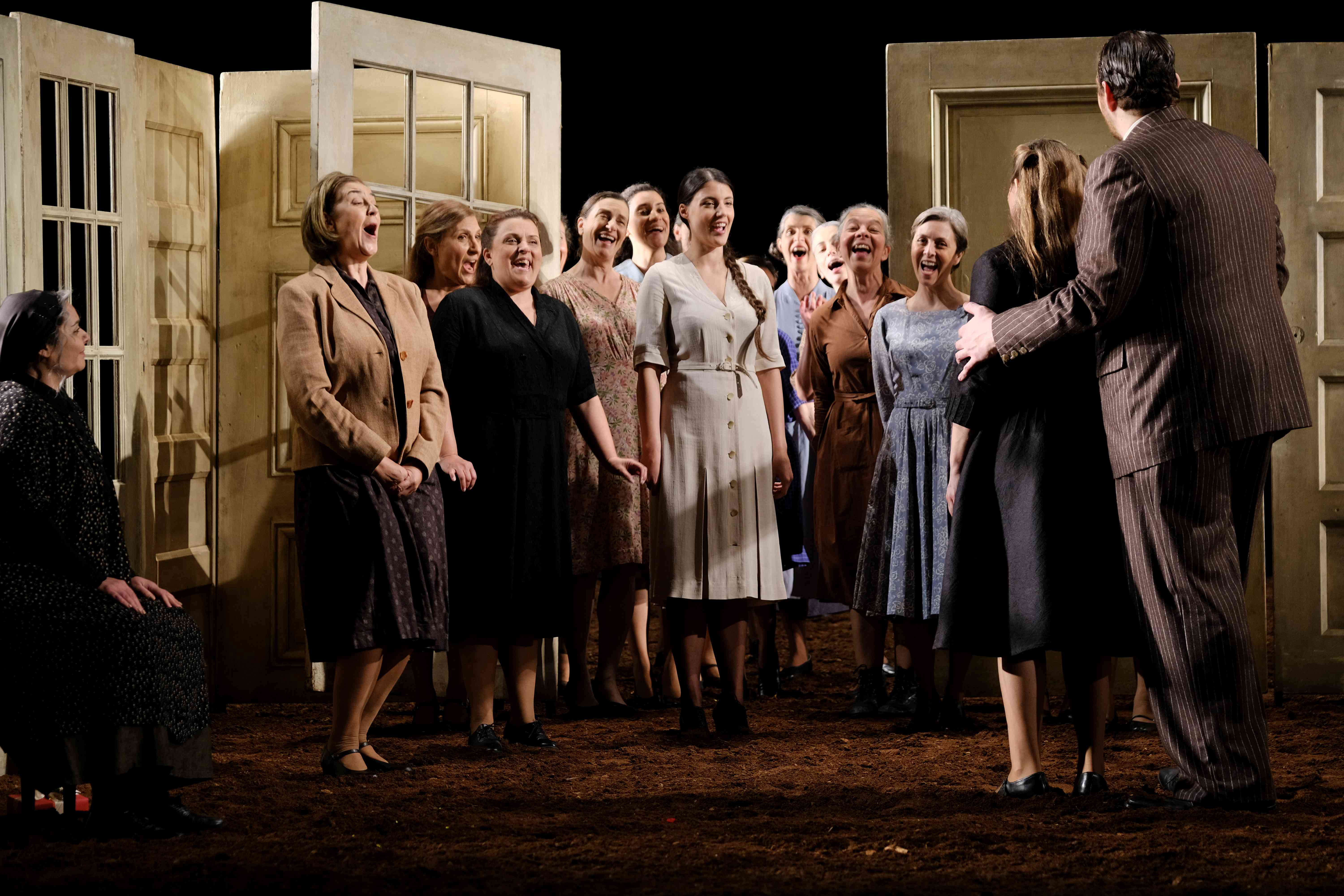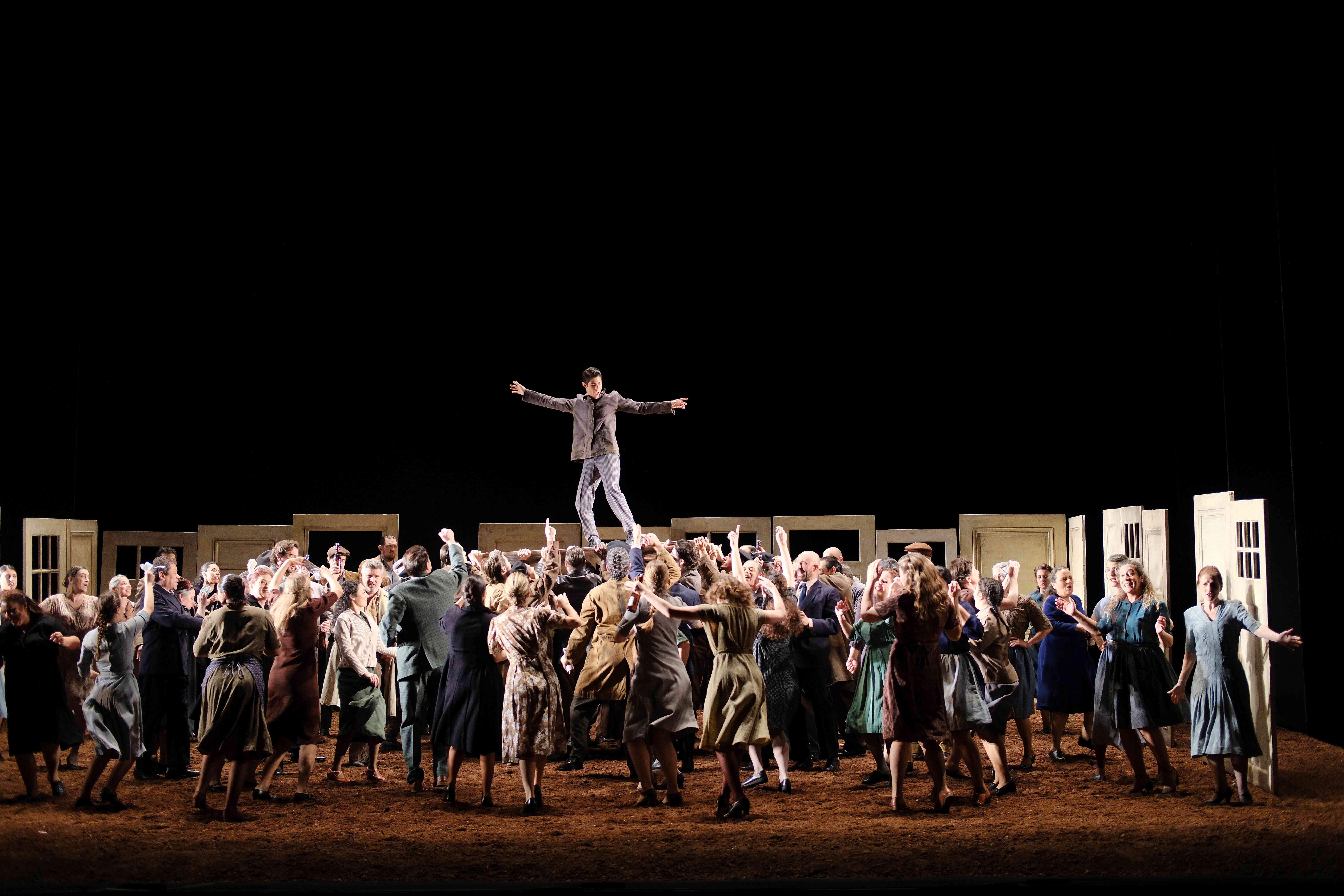 Carsen’s staging is certainly a very thoughtful and sincere one. Yet, I found it more cerebral than emotional as an experience. The opening scene of Act 1, is set behind the doors, rendering sightlines less than optimal, even from my very good seat in the centre of the plateia. This led to a sense of frustration that endured through Act 1, even though the set of doors at the front were removed for the celebrations. Furthermore, the impact of the singers was robbed somewhat by the acoustic effect of the earth on the stage, particularly if they were placed at the back of the stage, not helped by the open set and lack of acoustical support in Act 1. There was also an overreliance on stock operatic gestures – far too often, as was the case for the Kostelnička and Jenůfa in Act 2, they would simply drop to the floor in moments of high drama. Likewise, while the direction of the chorus and actors was definitely fluent and efficient, there was also an overreliance of having them run around on stage to create drama. Carsen’s staging is undeniably intelligent, but I longed for the sheer emotional impact of Calixto Bieito’s Stuttgart staging that I saw in Rouen, for example.