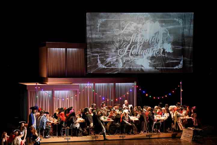 Given that Daland promises Senta to the Holländer in the libretto as an object to have, at first glance using Senta as being given to another man to abuse, might seem to be a cogent and logical starting point for a staging. Yet unfortunately Berger’s staging abounds in non sequiturs. What is the role of Erik precisely? Who is the Holländer and why is Senta obsessed with him? Is Senta’s single-minded pursuit of the Holländer simply her way of avenging her abusers? I’m not convinced in the slightest that Berger actually manages to answer these questions or indeed actually give us a persuasive staging that stands up to any kind of deeper critical scrutiny. Both Dorothea Herbert and the chorus were absolutely fearless physically, despite the difficult demands placed on them to simulate abuse. While I am loathe to give spoilers, in the closing three minutes, Berger did at least attempt to find some kind of dénouement. A group of teenagers, of all genders, approached the front of the stage, similarly outfitted in a red skirt similar to that which Senta wore when she was abused. At the rear of the stage, a group of chorus members, put on pirate hats for the final tableau. This was the moment where Berger finally started to explain his concept, but by then it felt far too late. Despite the best efforts of the cast, the personenregie that consisted of barely-directed principals gesticulating to the front, combined with the fact that there were so many gaps in the concept and narrative that Berger presented, all meant that this was an evening that felt considerably longer than its two-hour and fifteen-minute running time.