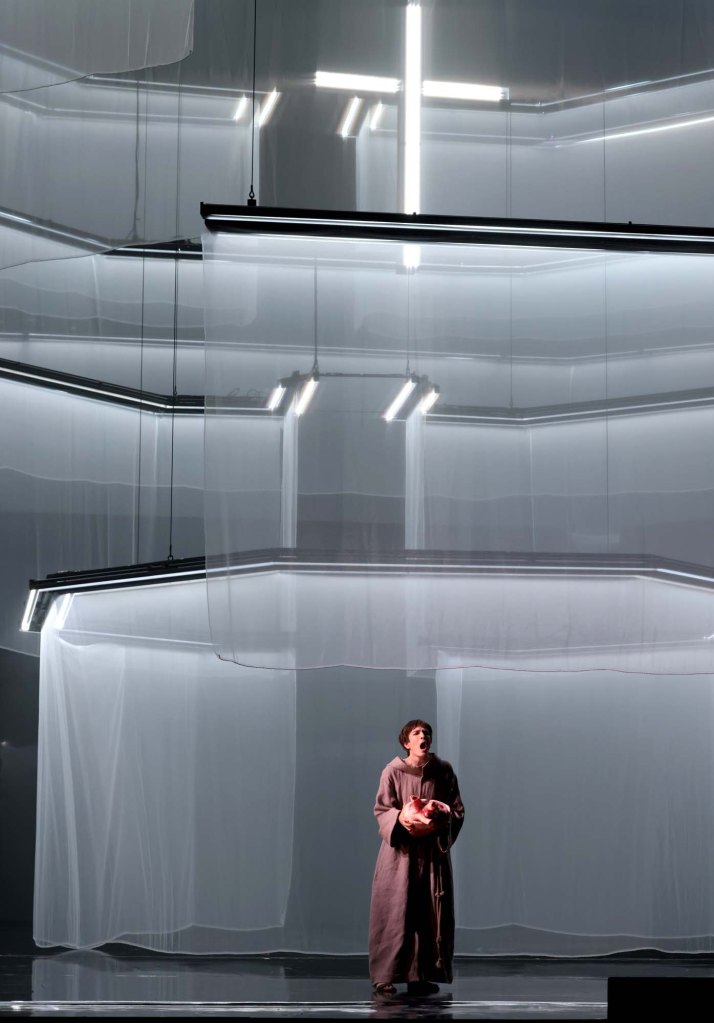 There’s something incredibly gratifying to see that all performances of the world-premiere run of an opera are completely sold out. The interest in Francesco Filidei’s latest stage work, an adaptation of Umberto Eco’s celebrated novel Il nome della rosa, has been enormous and it was wonderful to see the legendary Teatro alla Scala so full this evening, with an attentive audience hanging off every word and sound emerging from the stage and pit – with no mass exodus at intermission either. The opera is a co-commission between the Scala, the Carlo Felice in Genoa, and the Opéra de Paris, with a libretto by Filidei himself with Stefano Busellato.