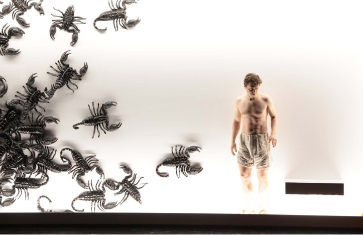 One of the qualities I associate most with Michieletto’s work as a director is the sheer emotional impact he brings to his work. He’s a director who can’t help but make us feel so profoundly. I have to admit that the sheer heart on sleeve emotion that marks his work was an aspect that was absent tonight. His staging felt esoteric, austere almost, in keeping with the monastic setting granted, but also with realities that felt intimated rather than felt. For instance, the central part of the stage was dominated by a rose-like structure composed of translucent drapes that hung from the flies. These would descend down to the stage to illustrate Baskerville walking through his mental processes, as he attempted to make sense of the murders, or, in the closing moments, they dropped to the ground to suggest the destruction of the monastery during the blaze. Similarly, Michieletto also brought some considerable visual interest to his staging – whether in a fresco coming to life, Malachia being tortured by scorpions, or strange figures with animal heads perambulating the stage. In doing so, it felt that he was very much bringing a medieval illustrated book to life. And yet, I can’t escape the nagging feeling that we were observing the emotions of the work from without, rather than the sheer emotional impact that Michieletto so often brings to his work.