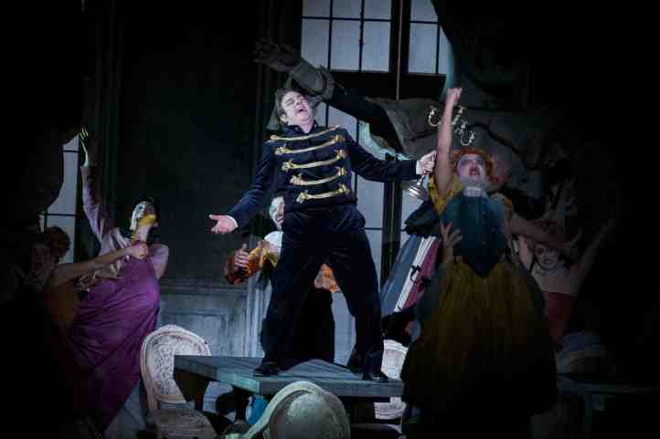 Margaine swept all before her as a commanding Gertrude. The voice has thrilling amplitude, filling the house with waves of sound. Margaine’s mezzo is utterly healthy, able to cross the registers without a hint of a break, always absolutely even from top to bottom. Naturally, it goes without saying that so much was sung off the text, the words always clear and filled with meaning. She was magnificent. It sounded to my ears that Riccardo Zanellato’s Polonius took a while to find his best form, the voice initially rather grainy, though lugubrious. Later, he found a Verdian depth to his scene with Nicolò Donini’s confident Polonius, offering a tortured reading of the guilty king.