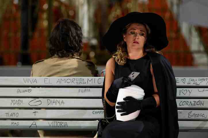 The musical direction of the evening was confided to Alessandro Cadario.  Here also, I felt that this was a reading that climaxed rather too soon.  Unfortunately, the winds and brass were far too backwards in the already recessed amplified sound, meaning that the sheer personality of the Mozartian writing lacked impact – the moment that the trombones entered didn’t quite register as one might have hoped.  His tempi were very much middle of the road and he occasionally asked the strings to pull the vibrato to add a ghostly pallor.  Several recitatives were trimmed, but they were generally paced in a conversational way.  Working in an outdoor space, with a dry acoustic, amplification and street noise, does require a different approach.  The way Cadario pulled the tempo right back in Elvira’s ‘In quali eccessi, o Numi’, felt like a less than optimal choice in this space, accompanied as it was by loud motorcycle engines.  Similarly, the stone guest scene lacked forward momentum, the ponderous tempo and mushy articulation weighing the music down.  Attack from the strings was rather soft grained, which felt less than optimal in this acoustic.  For the most part, Cadario led a sensible reading, but it did feel that it had climaxed too early, an impression reinforced by Barkhatov’s staging.
