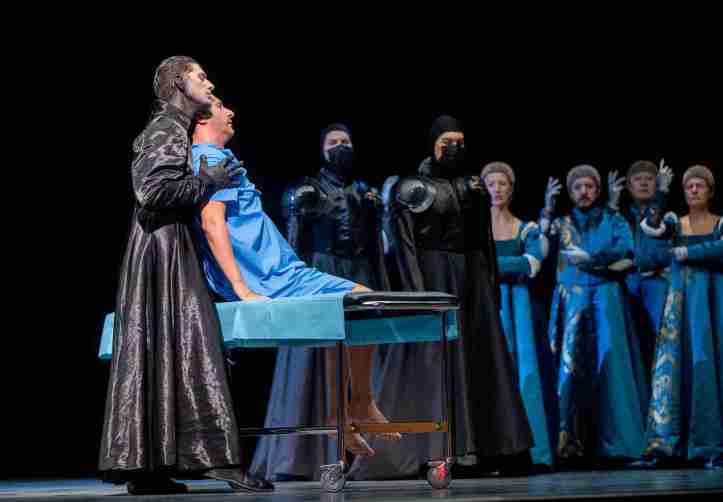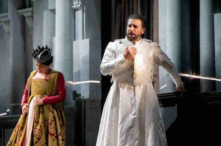 Furthermore, Micheli’s staging also falls down in its lack of coherent personenregie. Characters barely look at each other, simply parked at the front to emote. The principals definitely work very hard to inject dramatic life into the evening through their musicality, but the chorus is just brought on stage to pose with completely random hand movements, and then marched off again. The best directors, such as Michieletto, Bieito, or Warlikowski know how to make us ‘feel’, and there’s so much in this opera that abounds in real emotion. And yet the result of Micheli’s staging is that it unfortunately just sucks the life out of the work, rendering it confused and lacking in emotion, despite the best efforts of the cast.