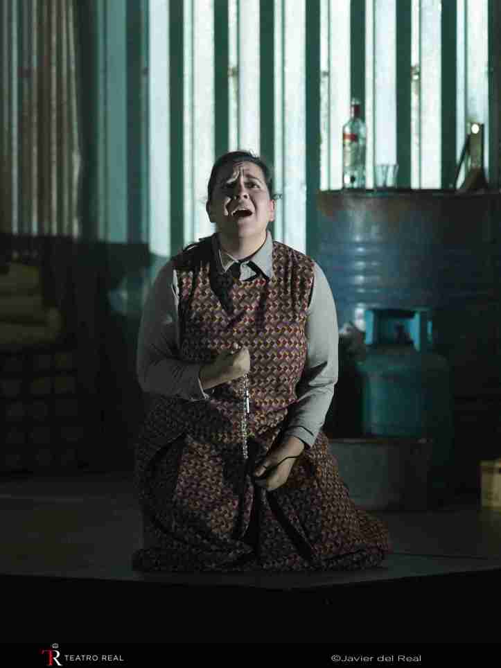 One of the qualities I most appreciate in Michieletto’s work is his ability to make us ‘feel’, and I had high hopes for this, one of the world’s most performed operas. He sets the action in a relatively sparse set, by longtime collaborator Paolo Fantin. The centrepiece of the set was a building, whether a police station in Act 1, a seedy bar for Act 2, a hut for the smugglers in Act 3 – complete with camionette to be loaded – or a green room for Escamillo in Act 4. The set revolves constantly, allowing us to see multiple angles on the action, giving us as viewers a sense of being able to see much of what the characters cannot, while also reinforcing the sense that fate for these individuals is something that cannot be tamed. That sense of fate is also manifested in the figure of Don José’s mother, incarnated by actress Lola Manzano, who appears frequently on set whenever the fate motif is heard, and hands out cards to individuals, underpinning that sense of the characters’ destinies already having been planned. The lighting, by Alessandro Carletti, is also most suggestive, particularly in Act 1, where the sense of the unbearable Andaluz heat emerges over the footlights through the bright colours produced by the lighting effects.