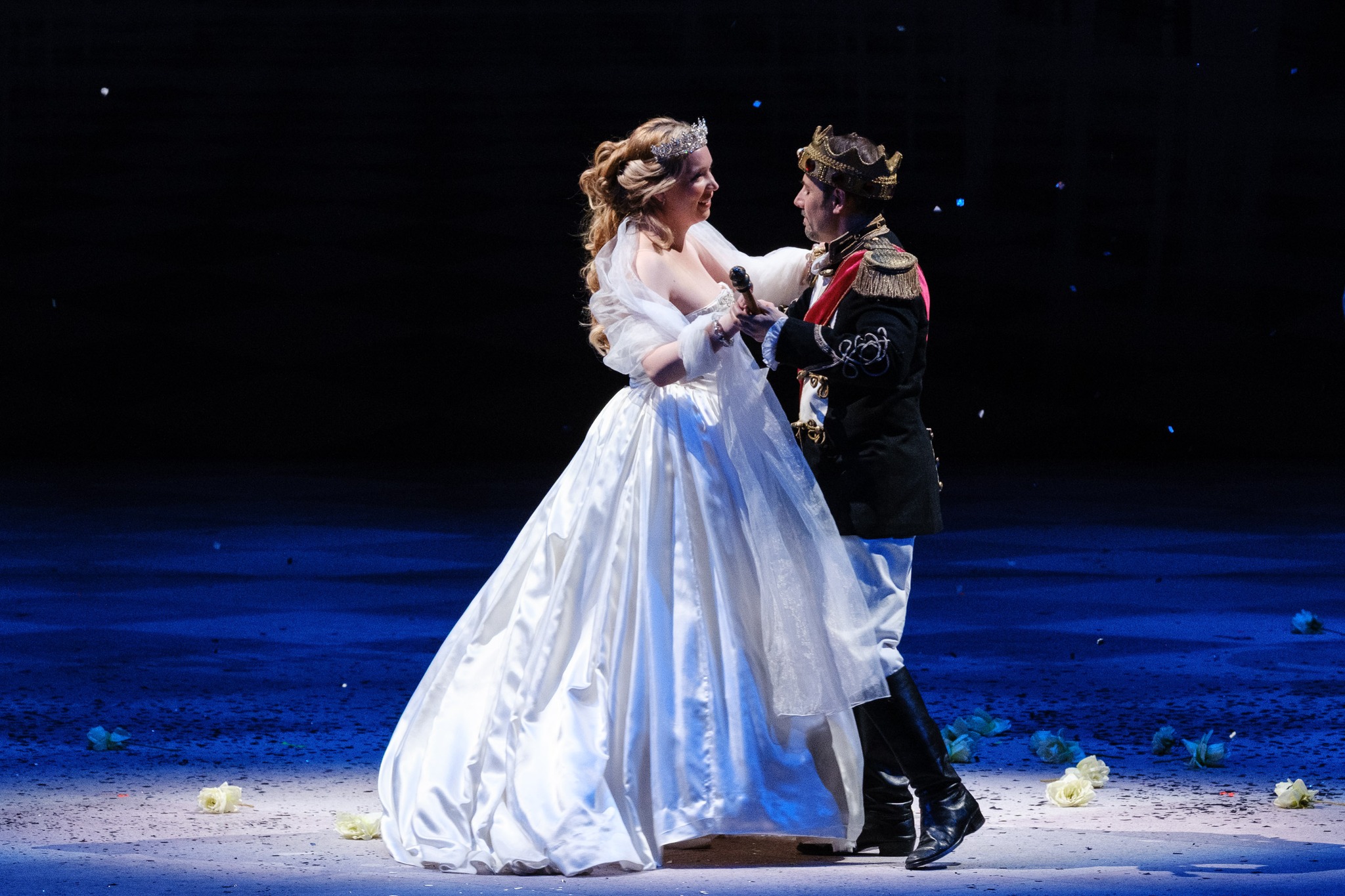 That said, not quite everything worked. Having the danseuses circulate around the front of the auditorium carrying umbrellas was certainly an exciting touch. Yet having them walk around the auditorium during Angelina’s closing rondo was extremely distracting. It was a nice idea – having them wave goodbye to Angelina now that she had become a princess, as if waving goodbye to someone whose dream had come true. The effect was that it distracted from Vasilia Berzhanskaya’s singing during the moment that should really cap the entire evening. I also found that when Lalli had the cast move around in formation with fans, as in the Act 1 finale, seemed to come from nowhere and was inconsistent in application – although the audience responded with evident glee. Still, it was a visually captivating evening and the young danseuse, who must have been around 6 or 7 years old seemingly interpreting a young Angelina, and who joined the ensemble with real skill and confidence, also was a sign of impeccable preparation.