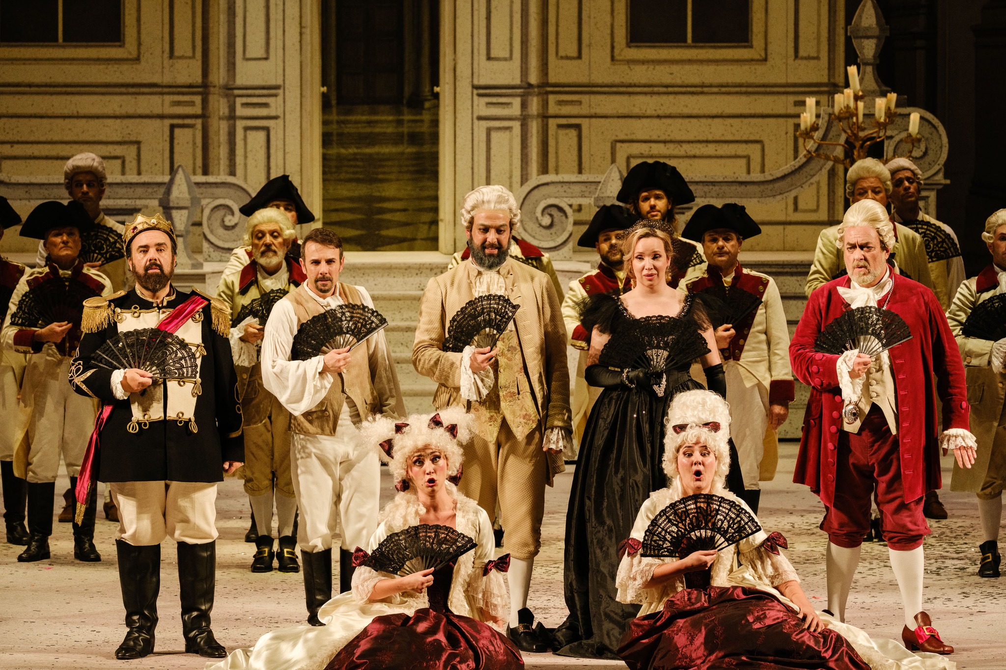 Carlo Lepore took a little while to find his groove as Don Magnifico, the voice initially sounding grey and hollow. As the evening progressed, the tone filled out, growing in resonance, singing with authority and terrific comic timing. In the role of Alidoro, Maharram Huseynov sang his music with warm generosity, his smoky bass even throughout the range. Albina Tonkikh and Martina Myskholid were assets to the cast as Clorinda and Tisbe, Tonkikh singing with bright, diamantine tone, and Myskholid with a sunny warmth. The chorus, prepared by Piero Monti, sang with precision and focus.